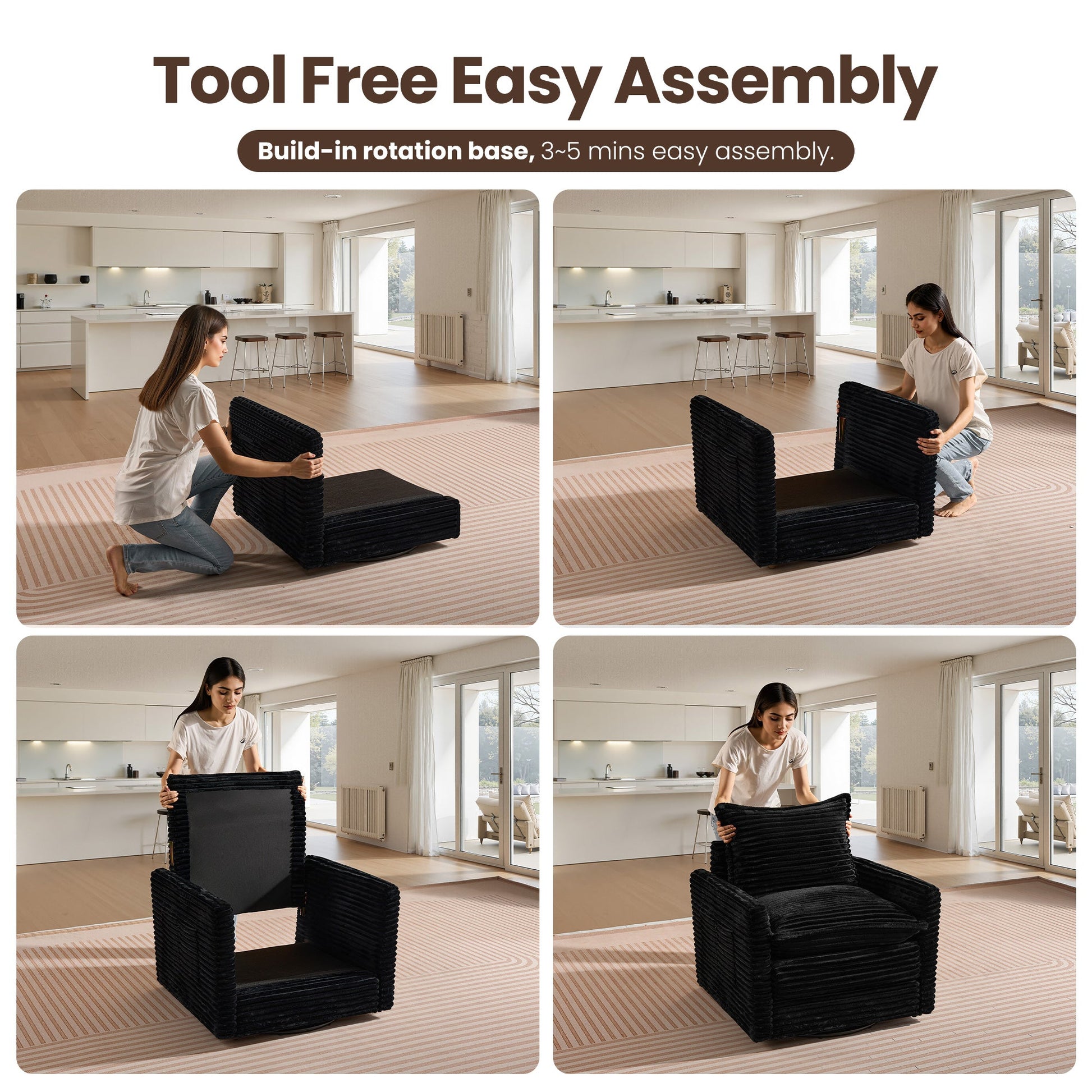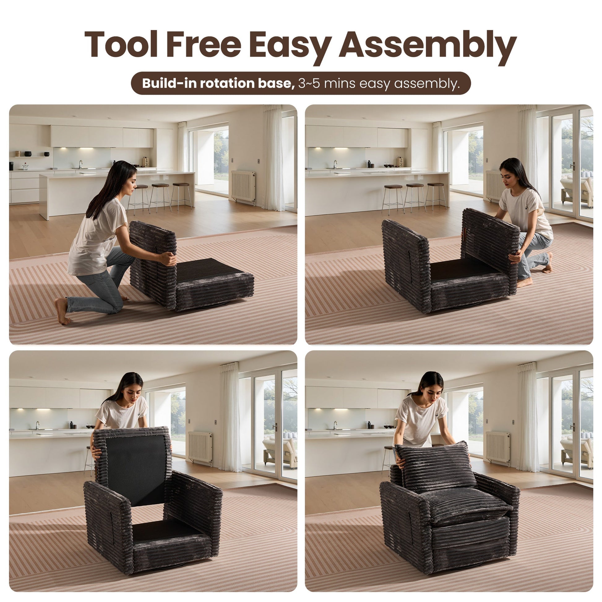 Easy Assembly and Move:Enjoy quick and easy assembly with our minimalism modular sectional sofa. It comes with all the hardware and instructions, only needs to be assembled in a few minutes, and the user-friendly design is the best choice for your living room, bedroom, reception room, office, lounge, apartment, dormitory and more spaces