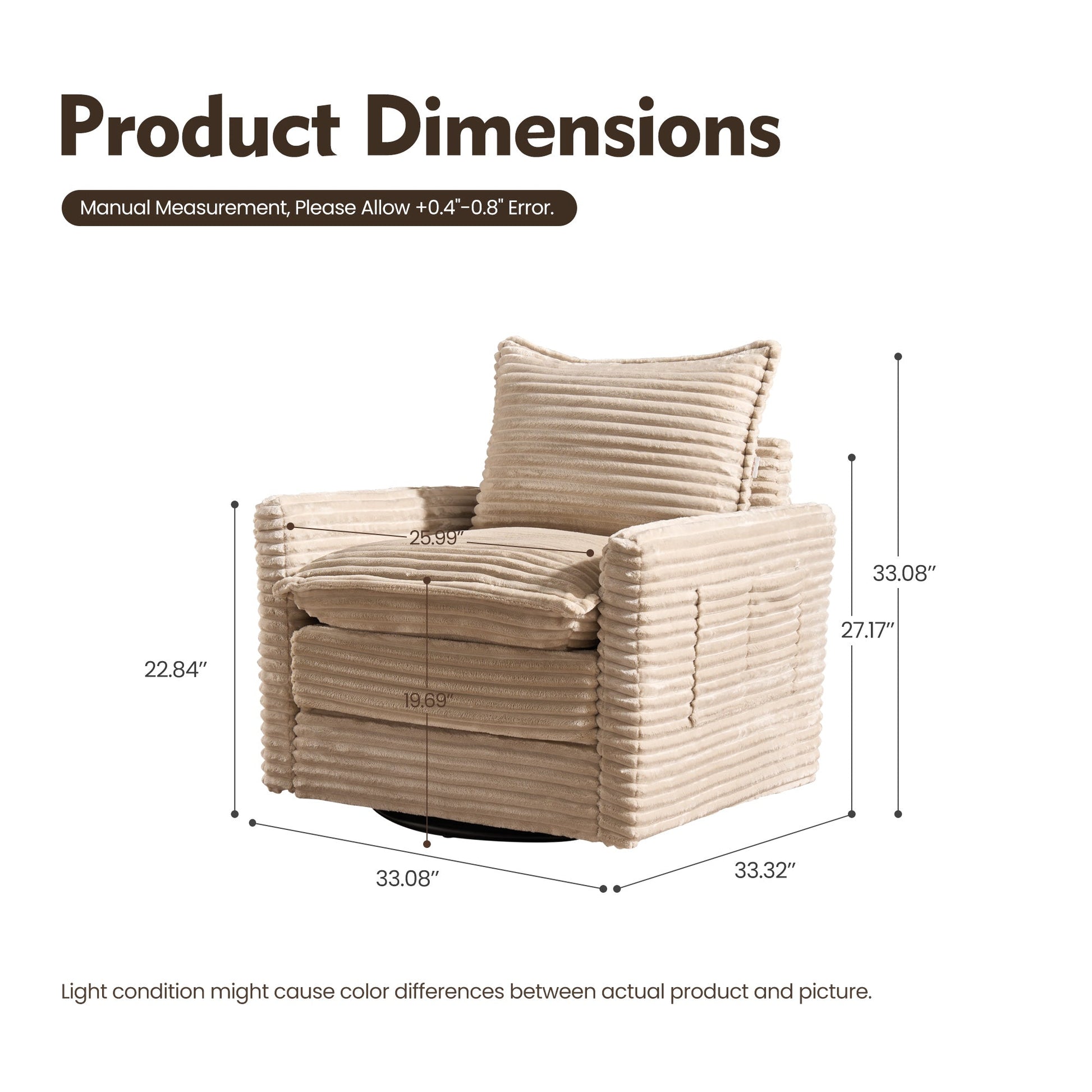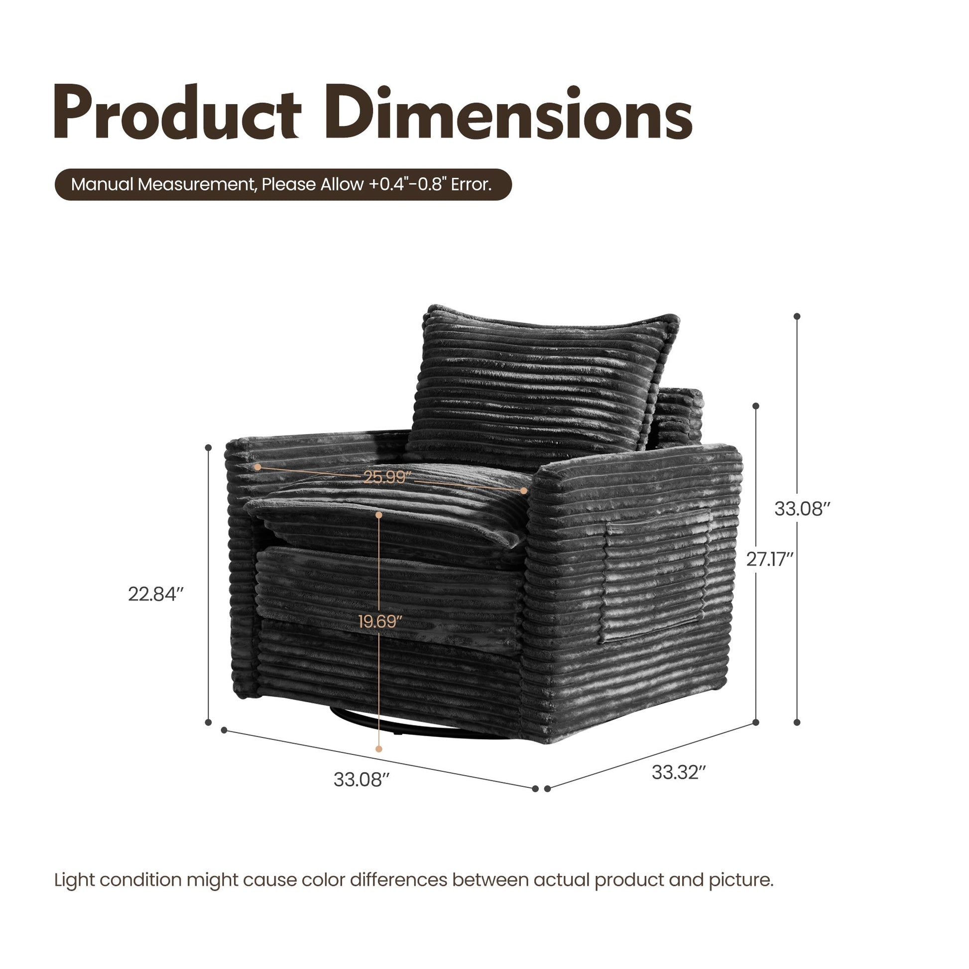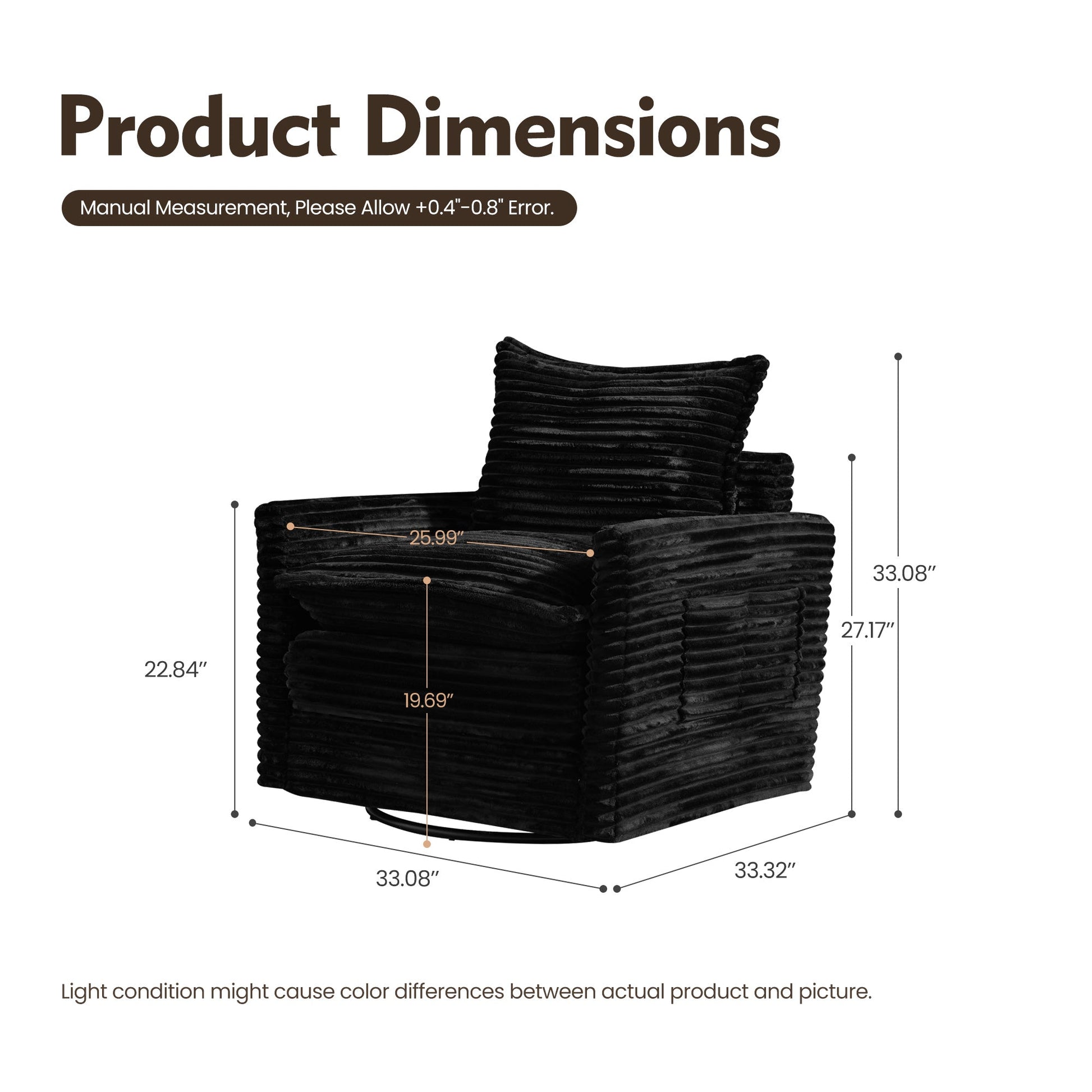 | Swivel Chair | 33.08"H x 33.08"W x 33.32"D |