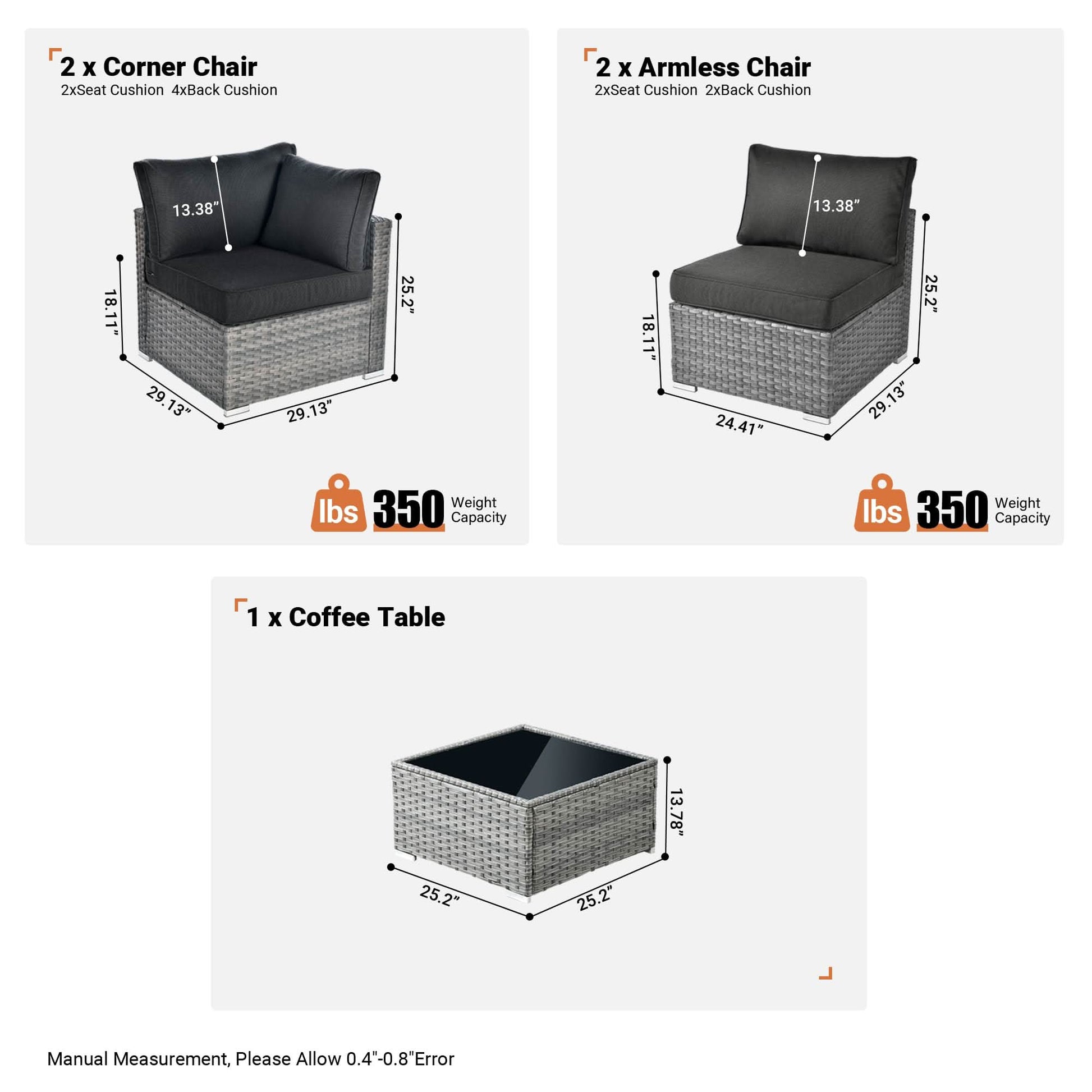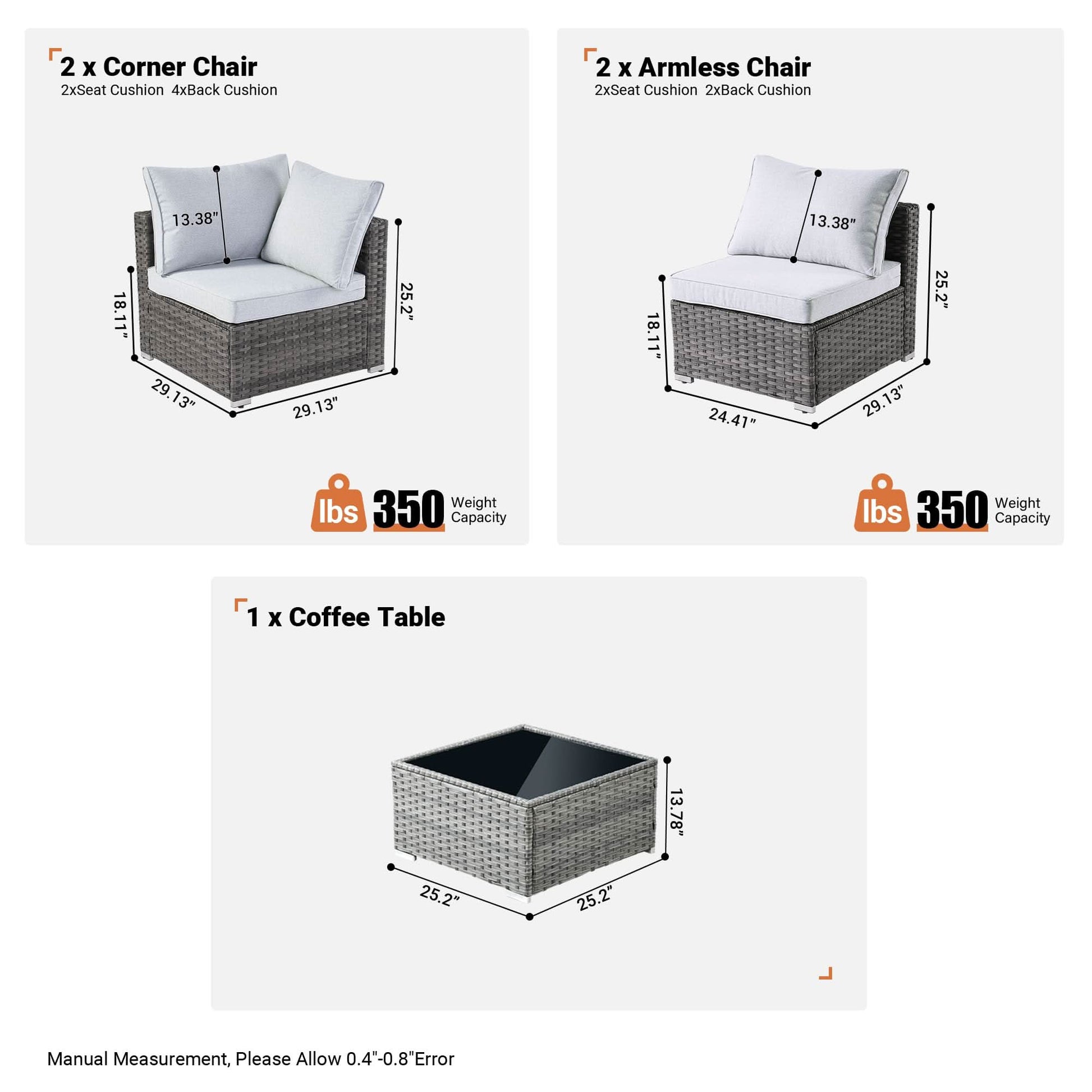 Modular Sectional Set:Customize your outdoor space with this sectional patio furniture set. With multiple configuration options, you can create a welcoming outdoor oasis for lounging, entertaining, or simply enjoying the fresh air. Create your perfect setup and make the most of your outdoor living experience