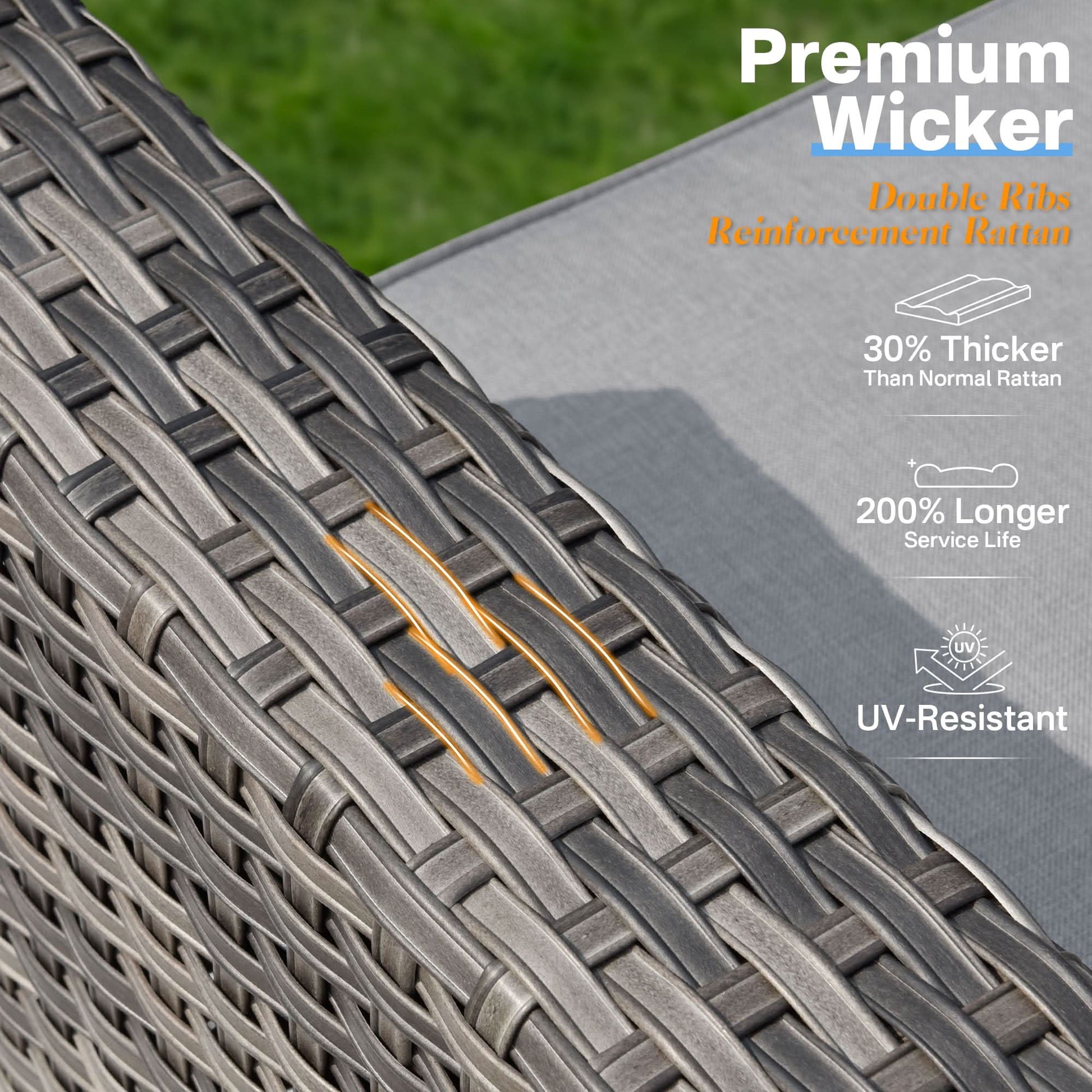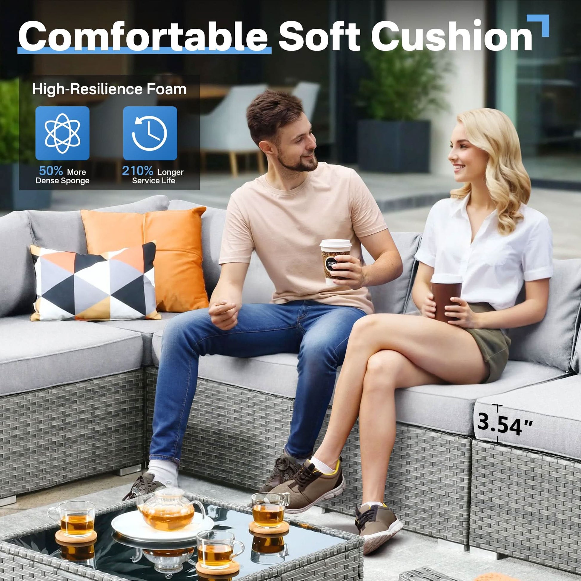 Comfortable Outside Couch:Indulge in maximum comfort with the 3.5" thicken seat cushions and ergonomic backrest in this patio set. Ideal for extended outdoor lounging with family,and take a conversation for your guest long time, offering optimal support for your relaxation needs