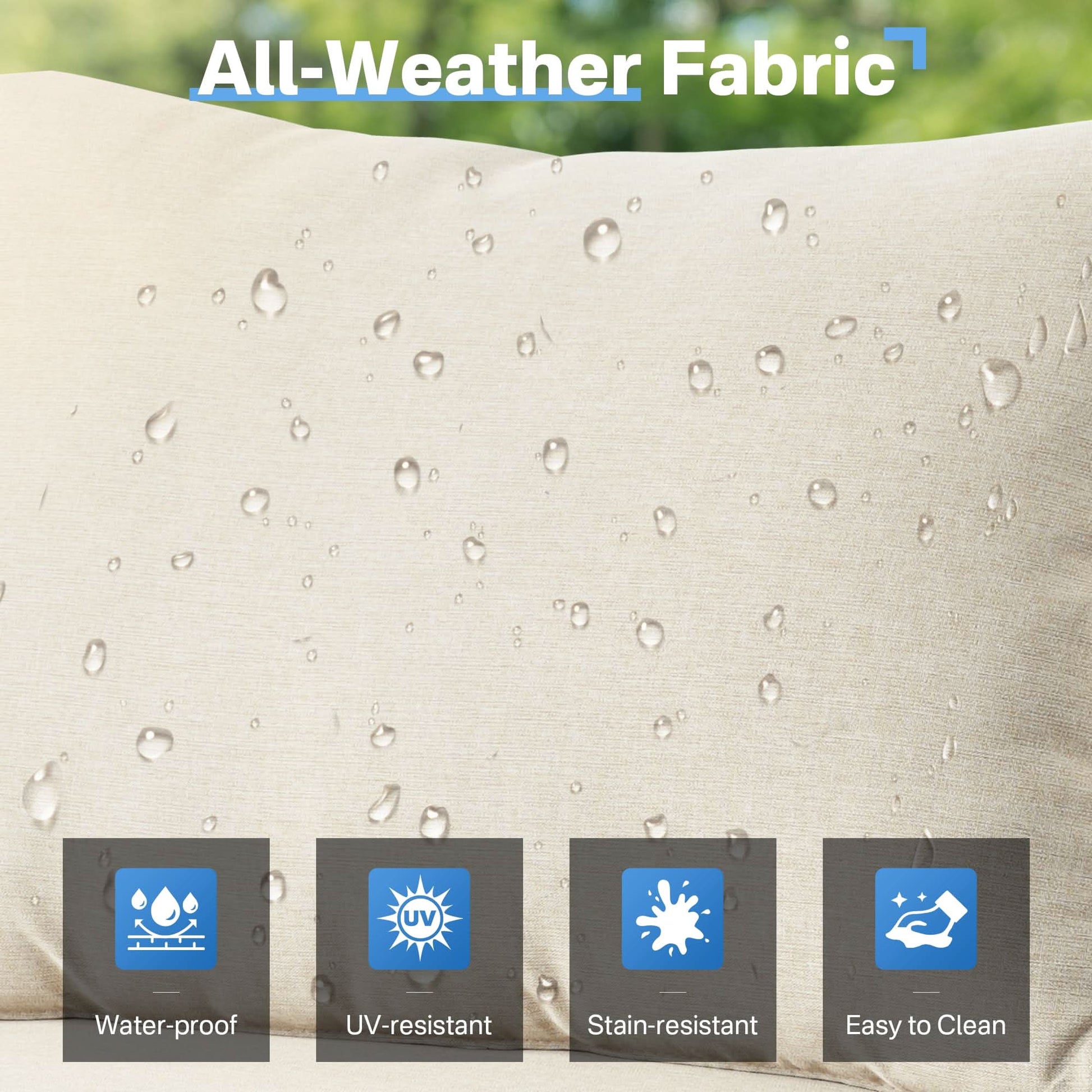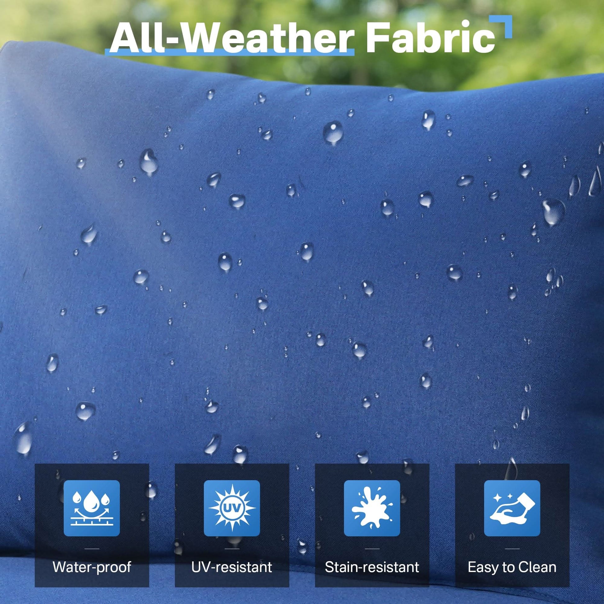 Easy Assembly & Maintain:Assembling this patio furniture set is a breeze with the provided tools. Maintenance is easy thanks to the splash-proof material. The cushion covers can be removed for convenient cleaning, while the glass table top is a snap to clean with just fresh water or a warm soak for tough stains