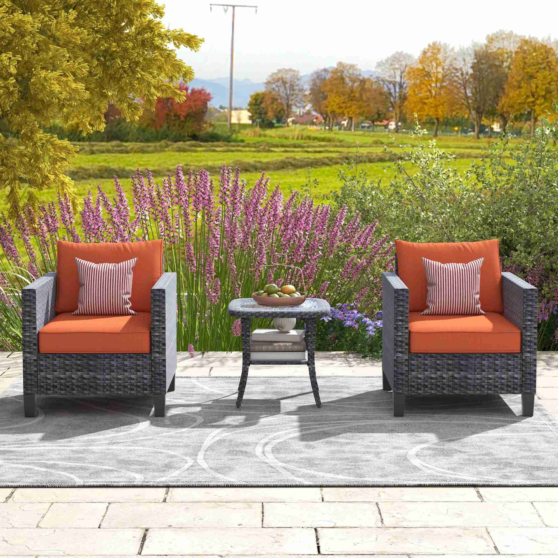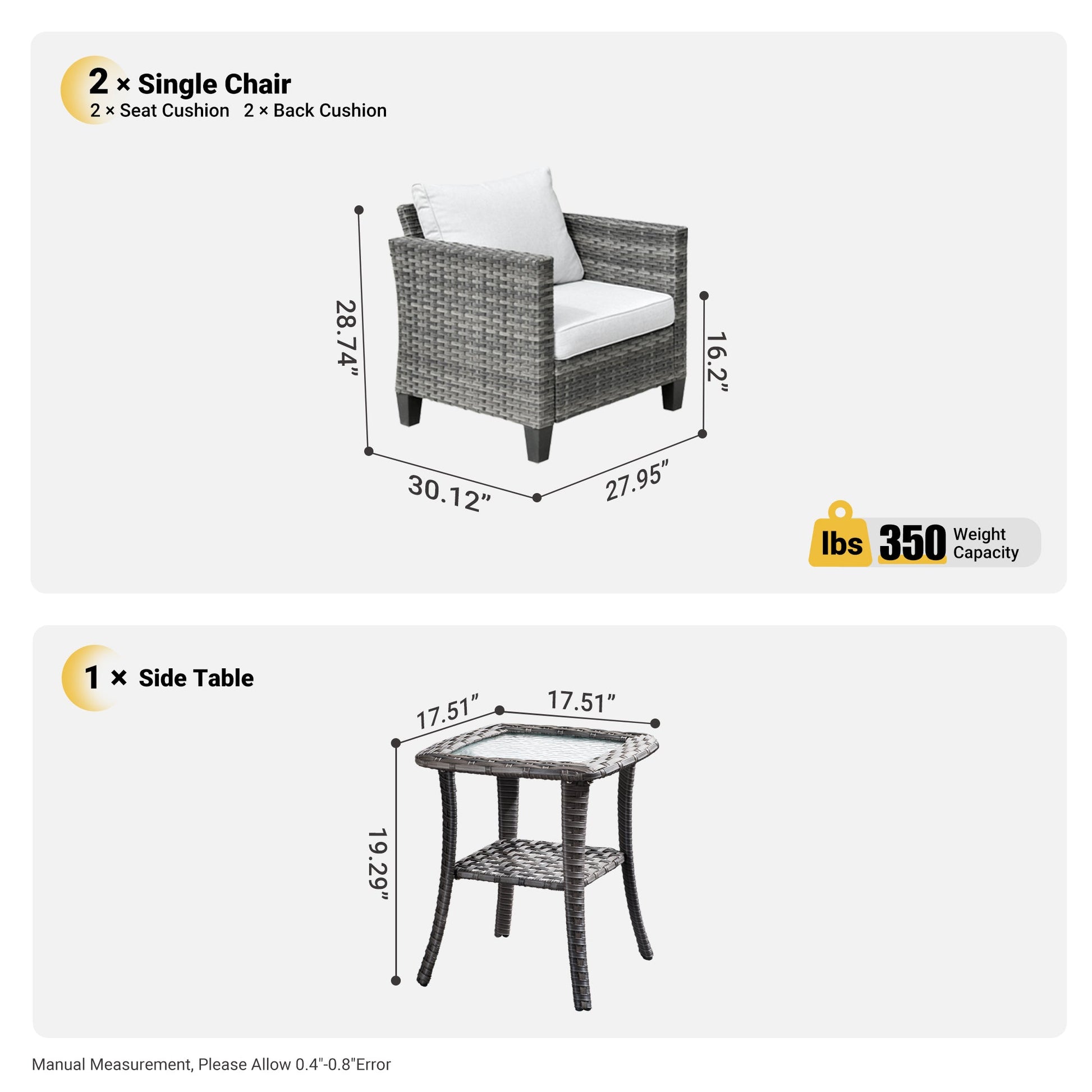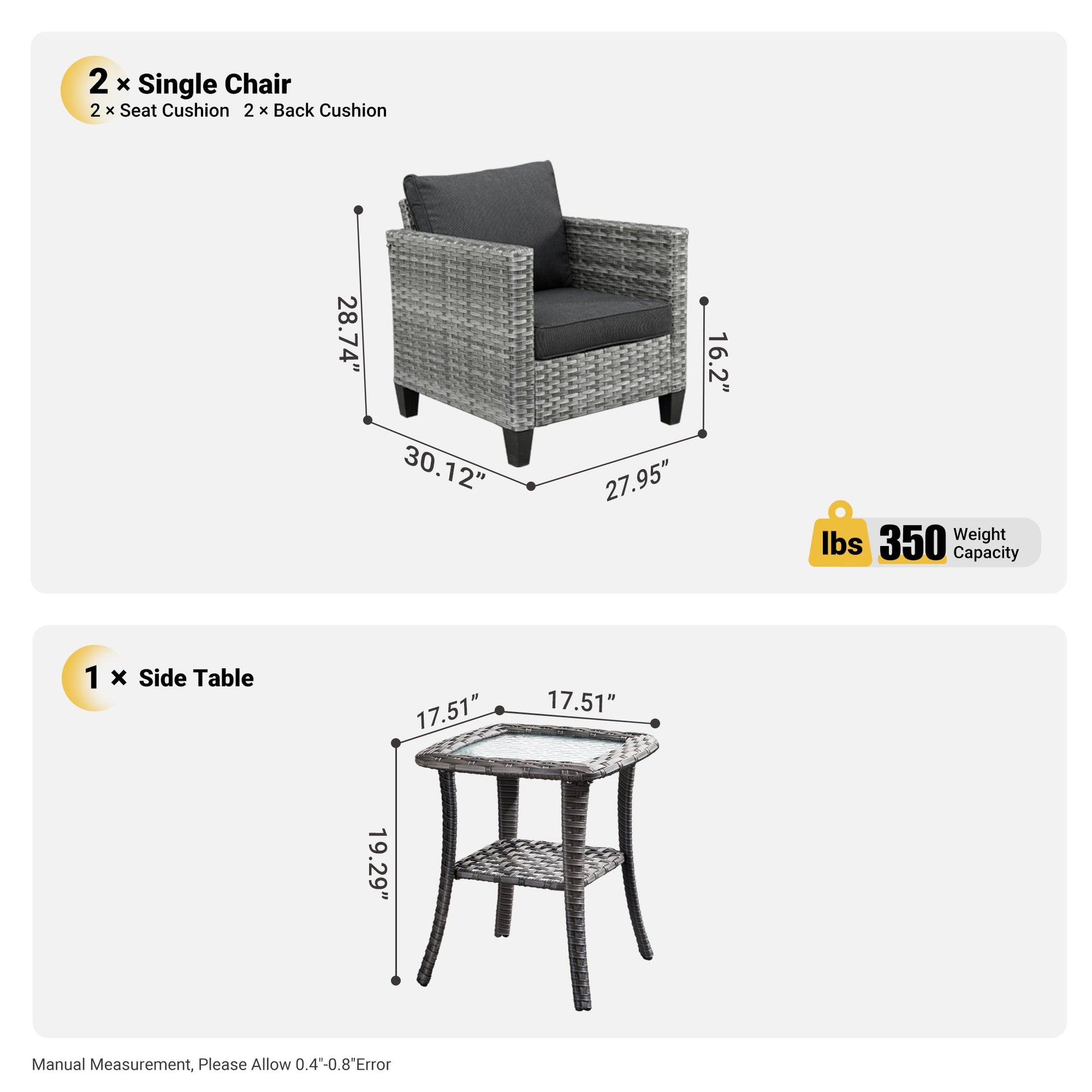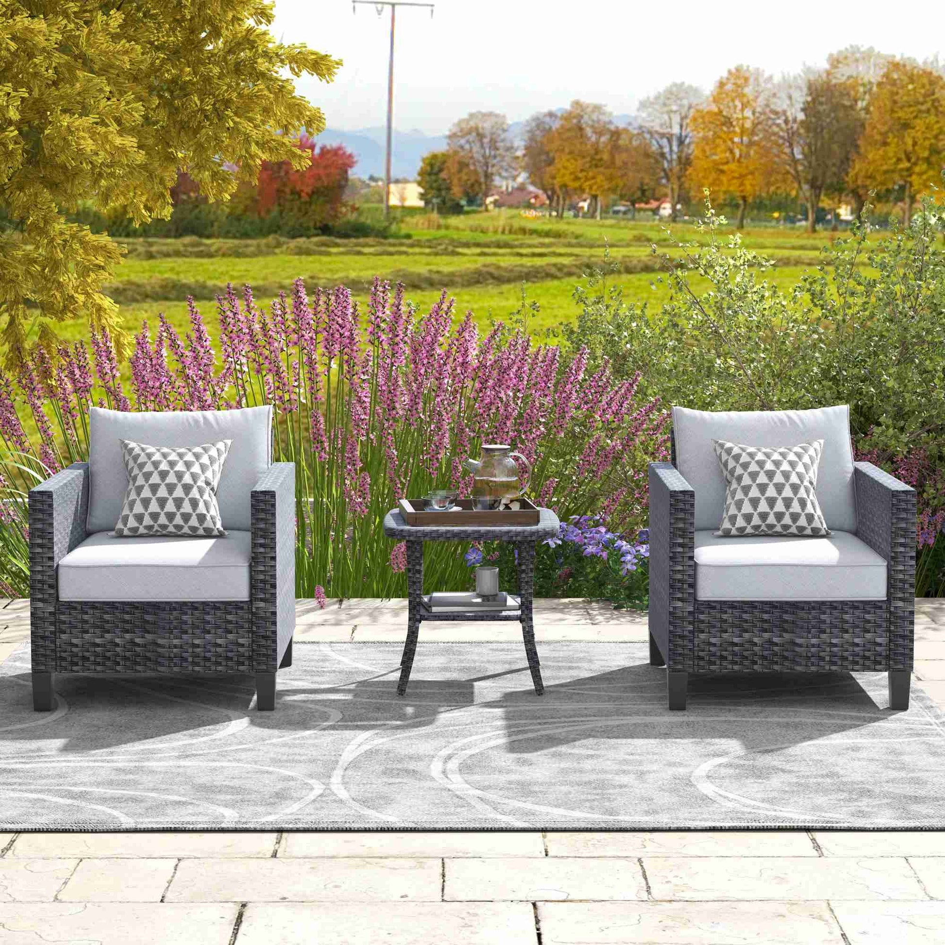 OVIOS Patio Chairs New Vultros 3-Piece with Table High Back Square Shape Armrest