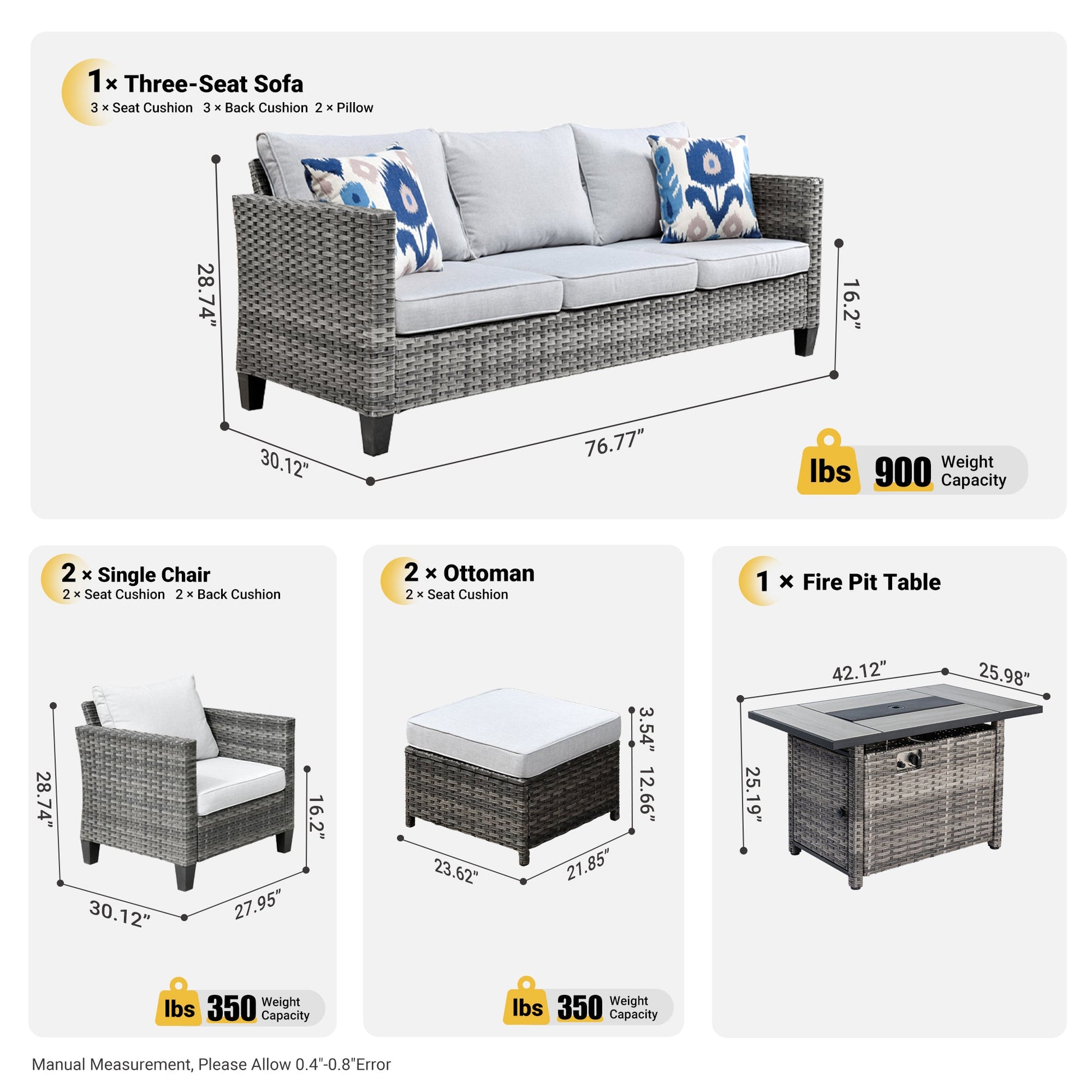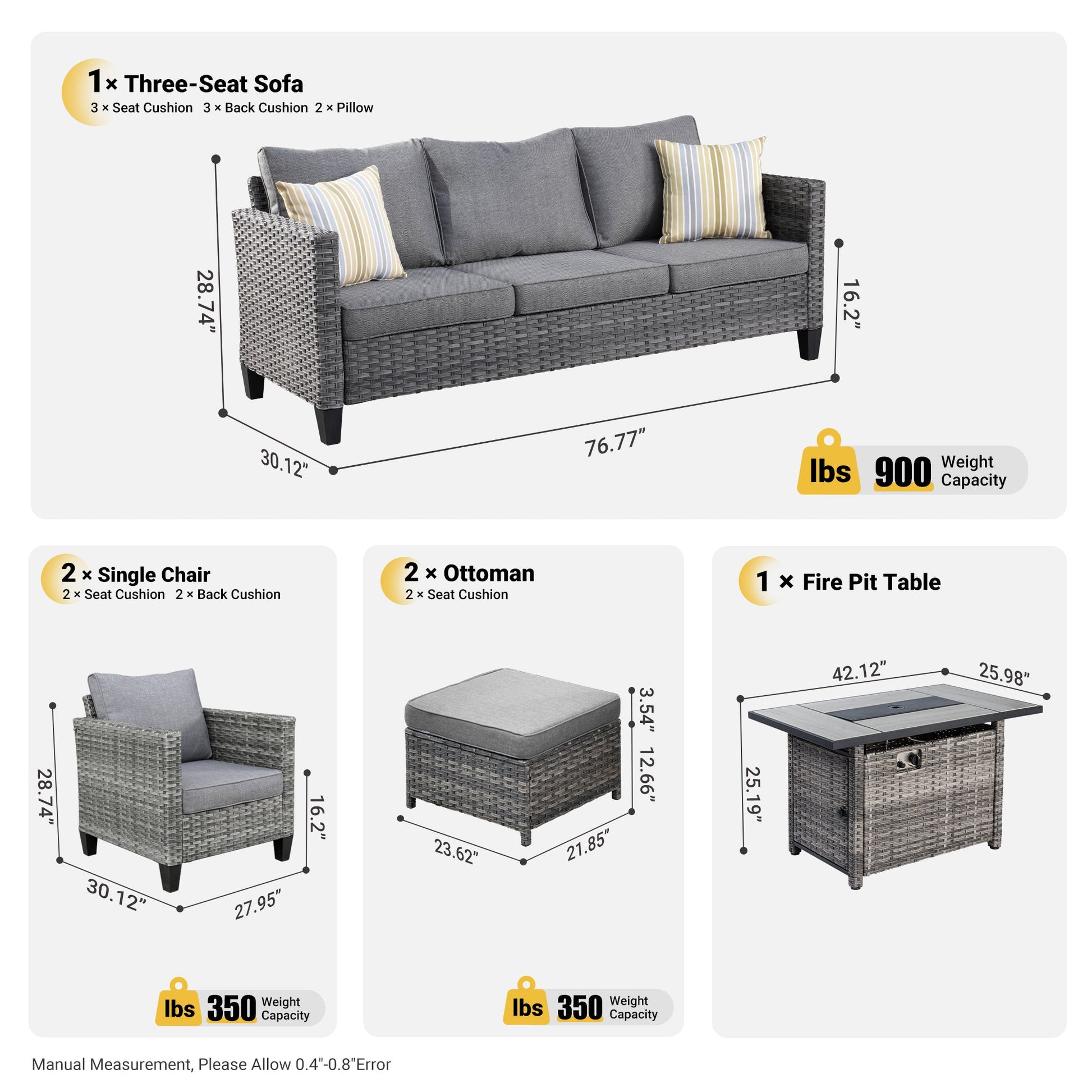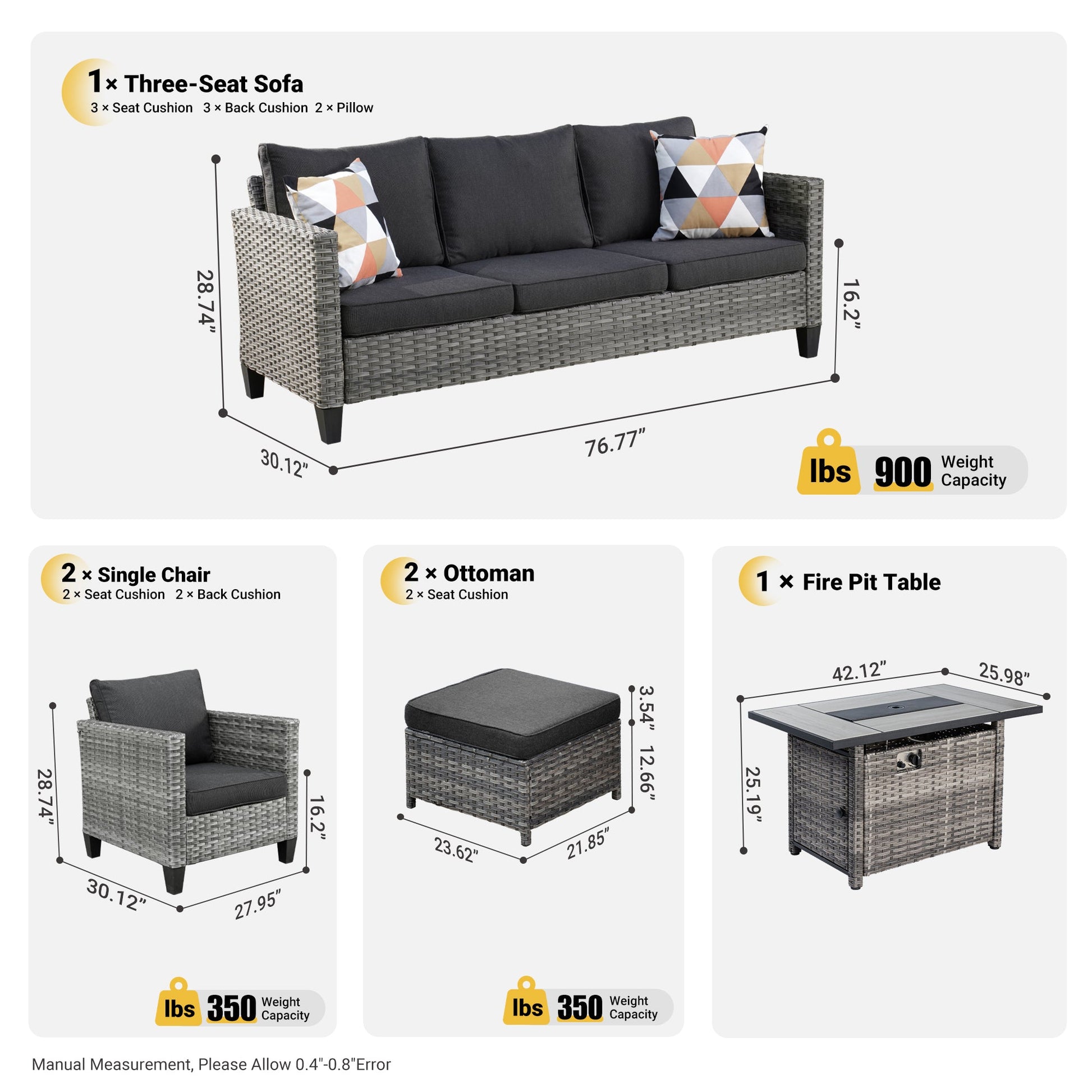 | Items Included | 6 PCS include: Fire Pit Table*1,Sofa*1,Single Chair*2,Ottoman*2 |