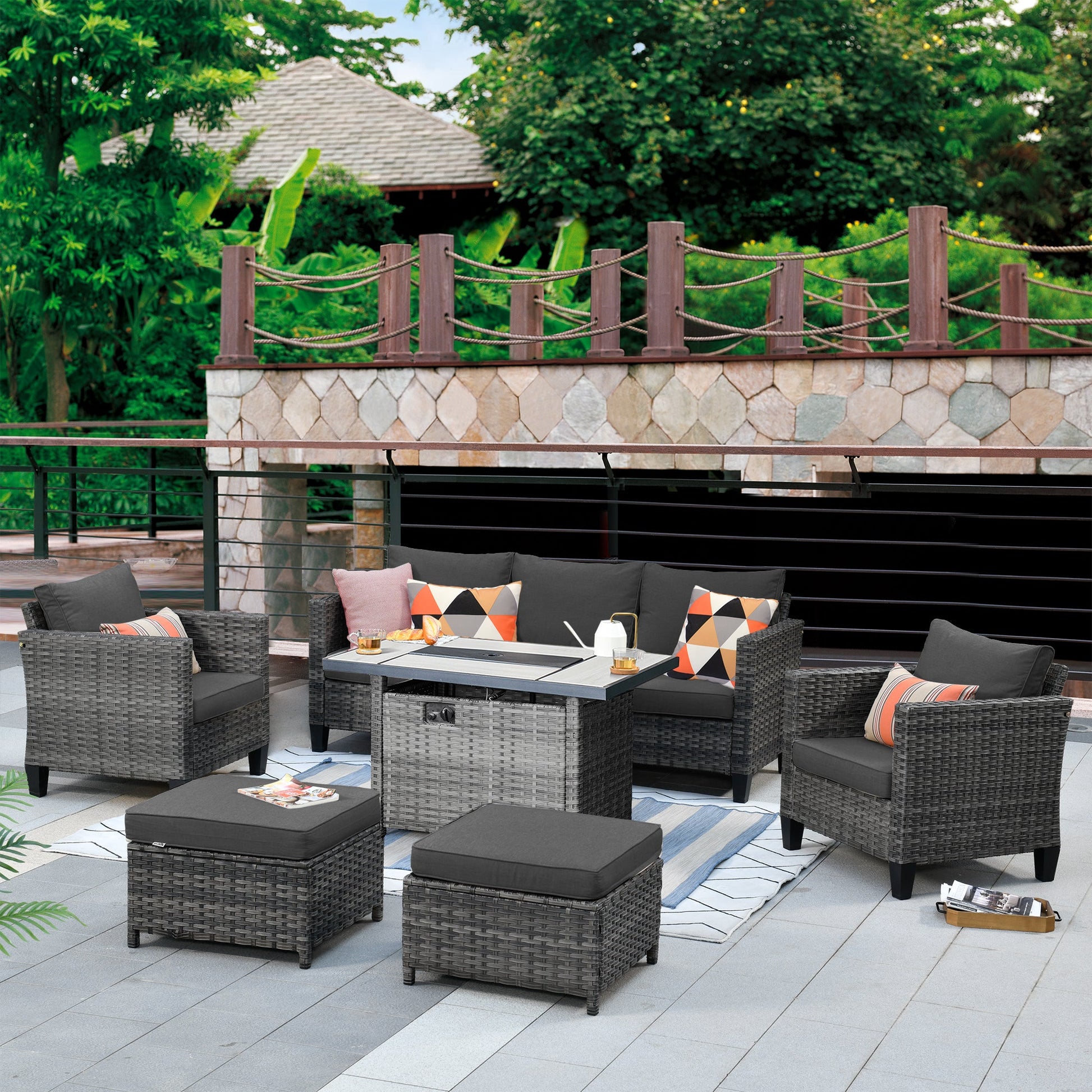 OVIOS Patio Conversation Set 6-Piece with Rectangle 42'' Fire Pit Table and Vultros Set
