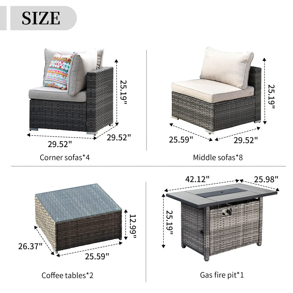 | Items Included | Sofa; Sectional; Table; Cushions; Fire Pit |