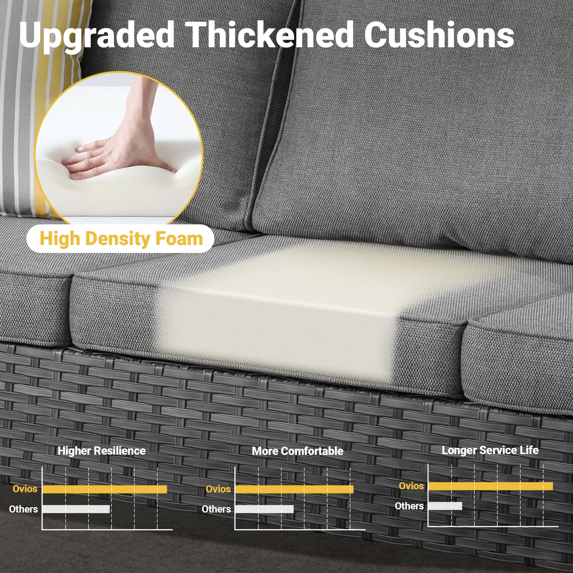 Patio Furniture Set:I Elevate outdoor moments with our expansive sectional sofa, ideal for gatherings of 7 friends. Crafted for versatile placement, it complements any setting seamlessly.