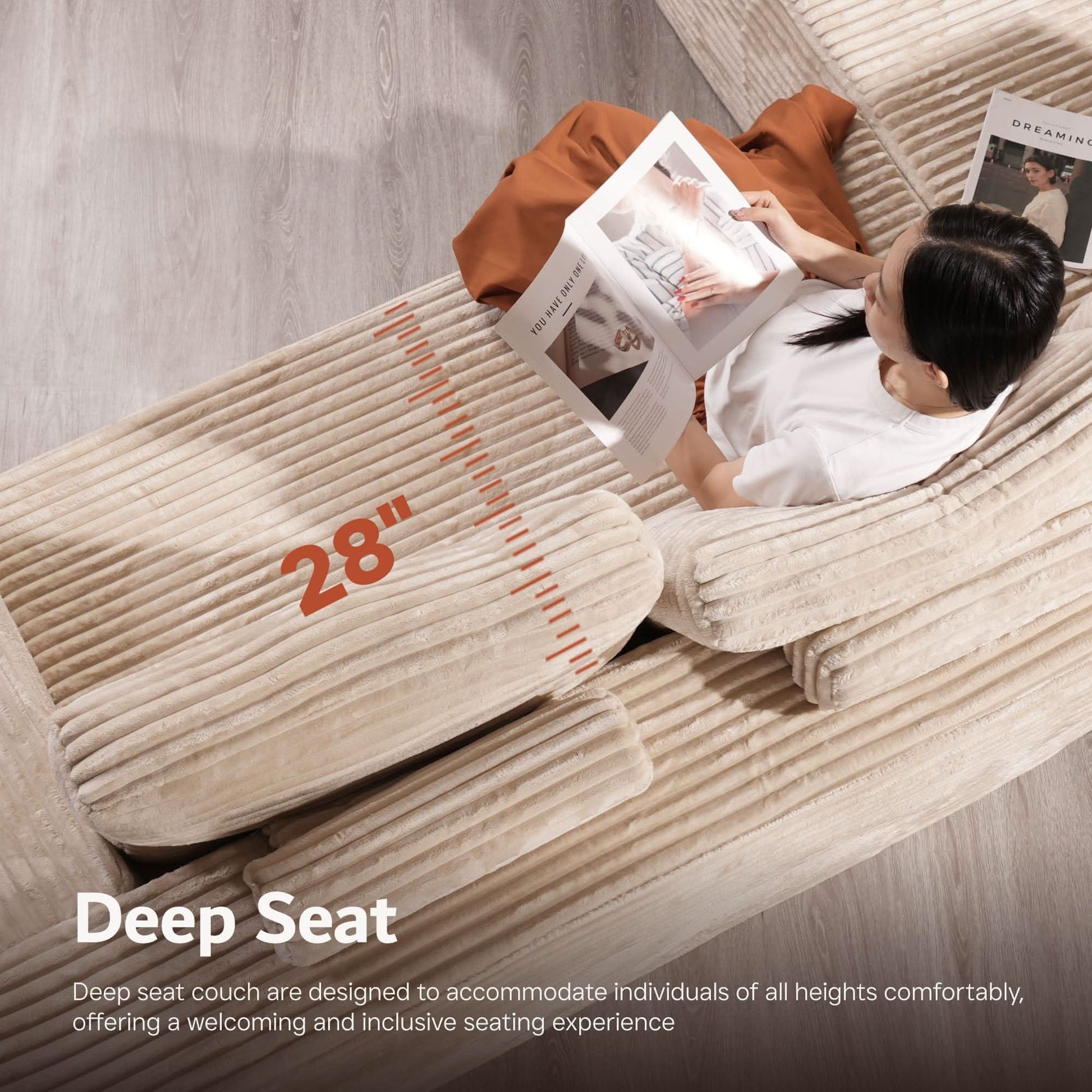 OVIOS sectional cloud couch, living room U-shaped sofa, plush corduroy, memory foam, no assembly required.