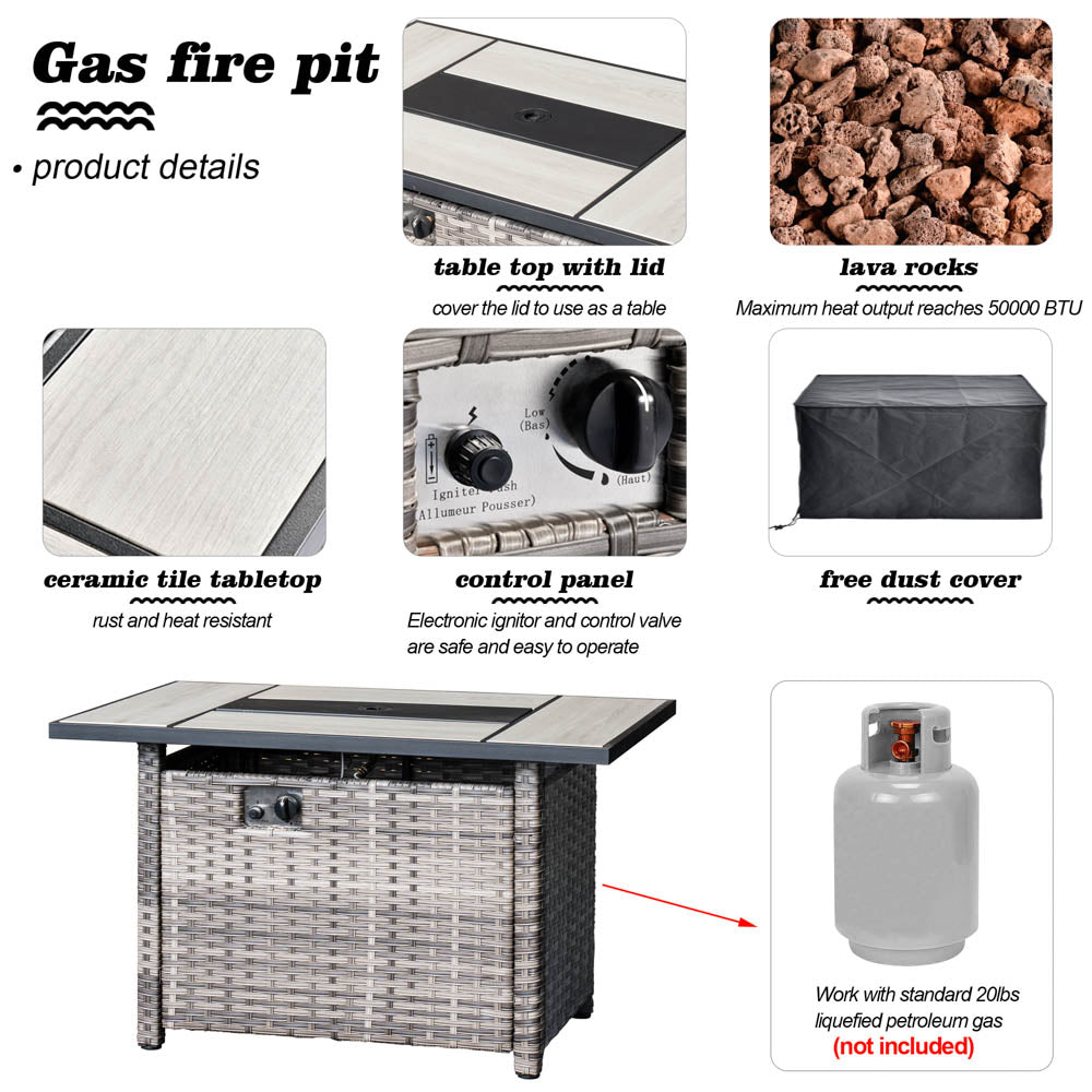 Safety Assurance:Certified at 50,000 BTU, the fire pit table comes with a safety valve for worry-free use. Powered by propane, it guarantees stable and eco-friendly burning, freeing you from ash and smoke concerns. Enjoy a secure and environmentally conscious outdoor ambiance.
