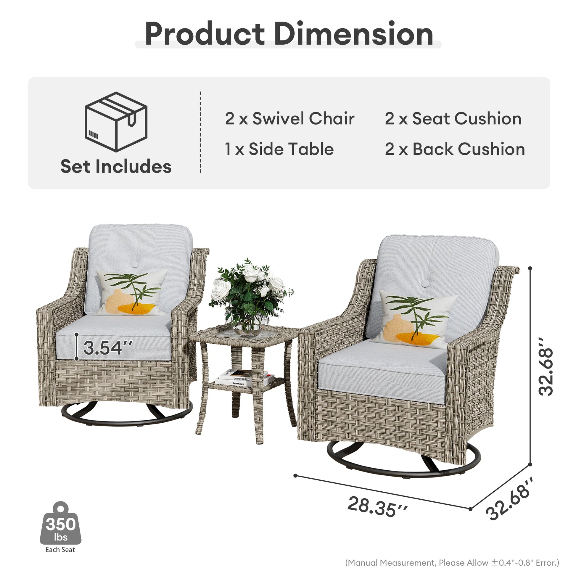 | Swivel Chair | 33.07"H x 28.35"W x 32.68"D |