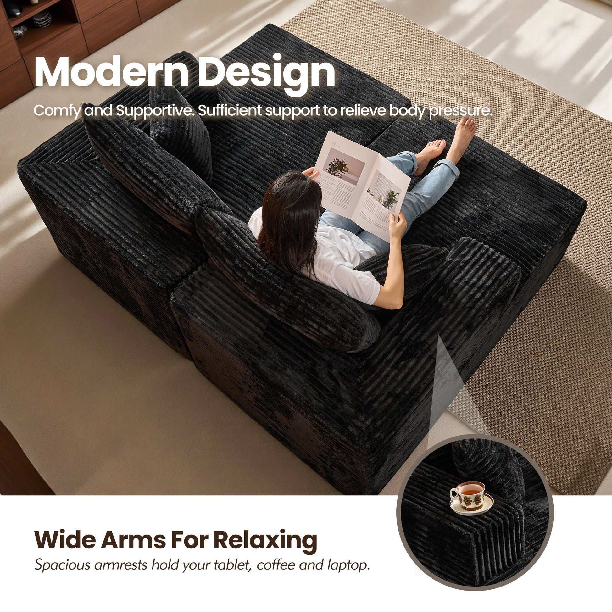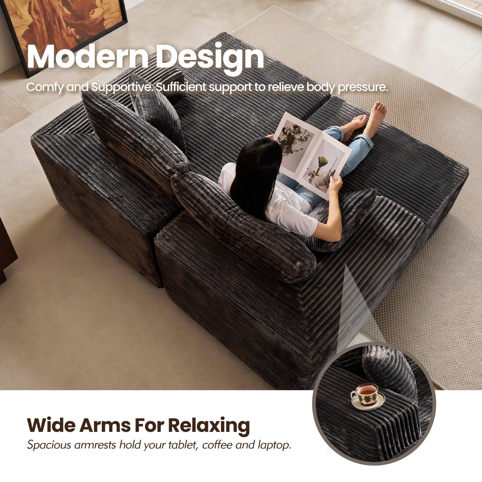 Luxurious Comfort: Crafted from plush corduroy, this sofa offers a rich texture that is soft to the touch, skin-friendly, and warm.