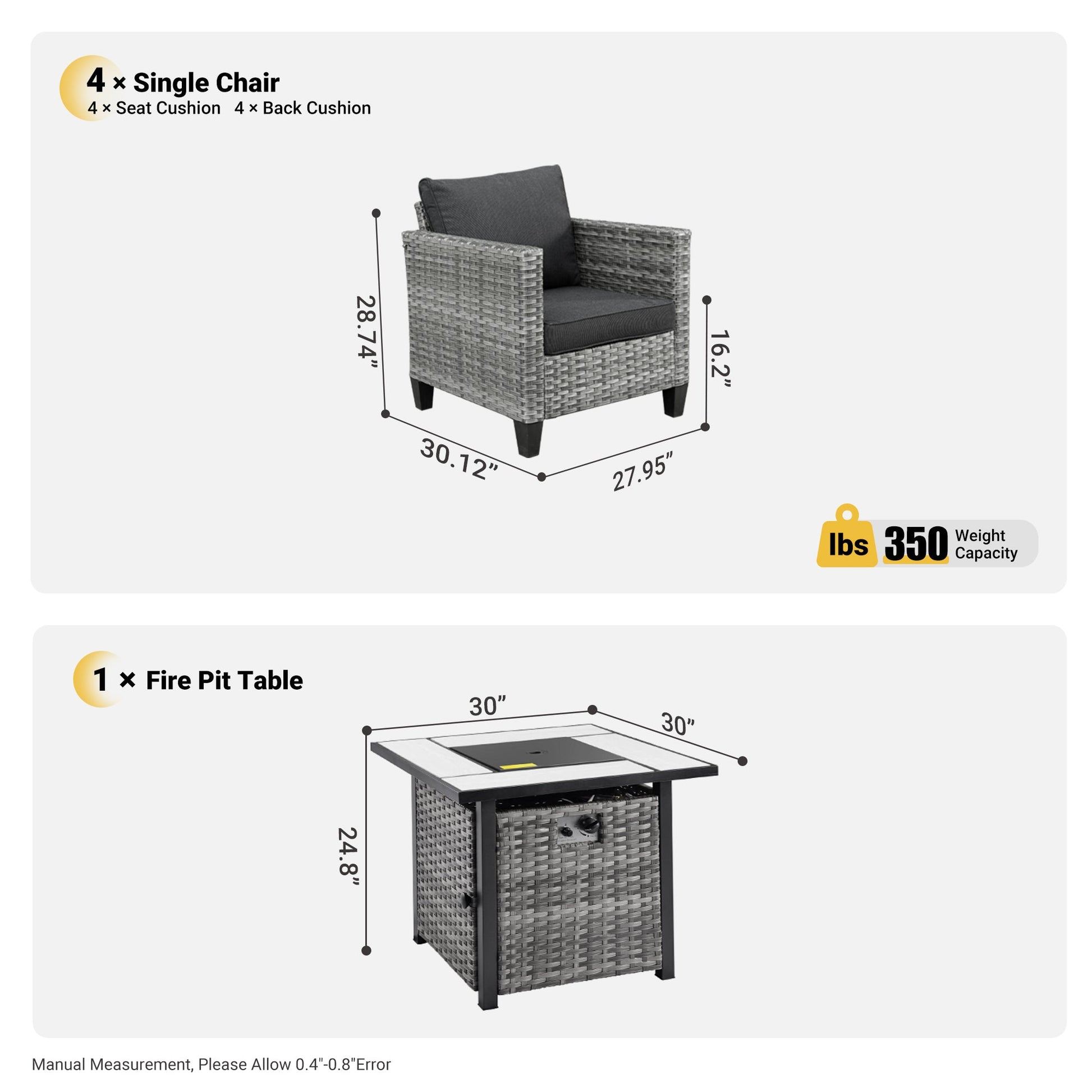 Ovios Patio Furniture Set 5-Piece with 30'' Fire Pit Table and Vultros Chairs