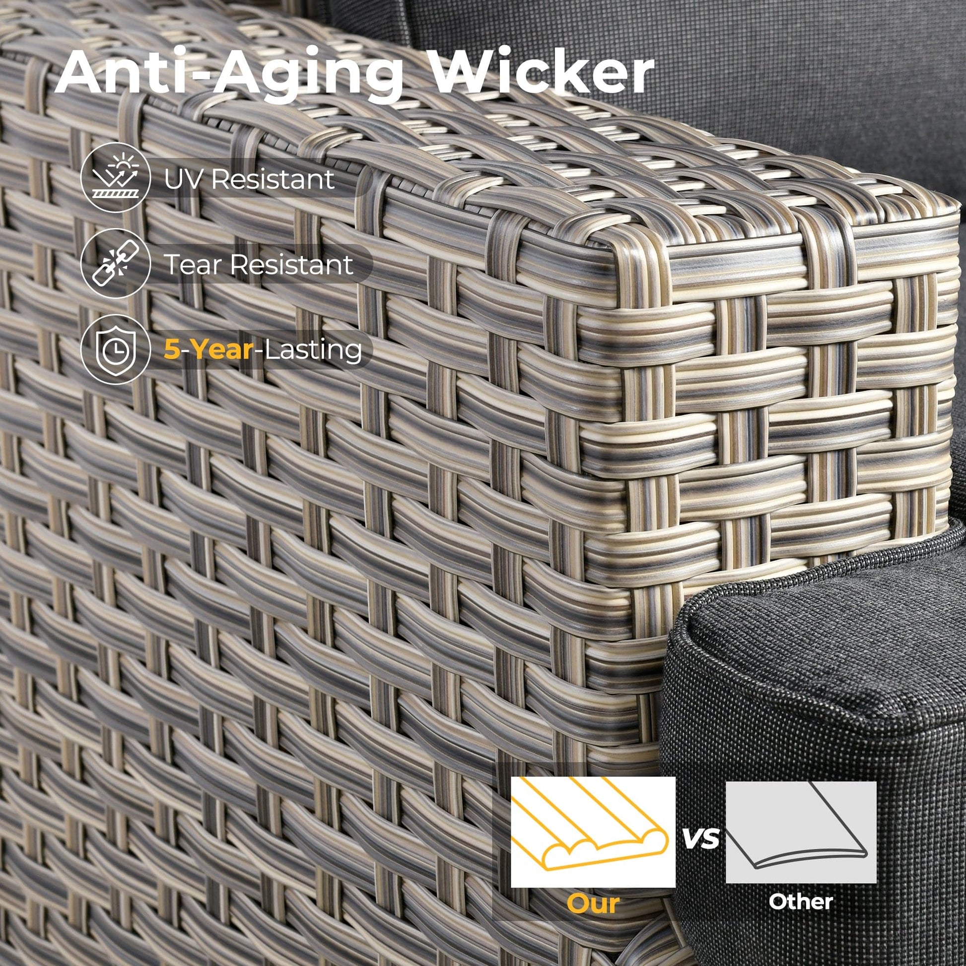 Easy Maintenance: Featuring cushion covers with smooth zippers for effortless removal and cleaning, this set is designed for convenience. Made from weather-resistant PE rattan, this all-weather sectional sofa resists rusting and fading, maintaining its attractive appearance year after year. The low-maintenance materials ensure your outdoor space remains fresh and inviting with minimal effort.