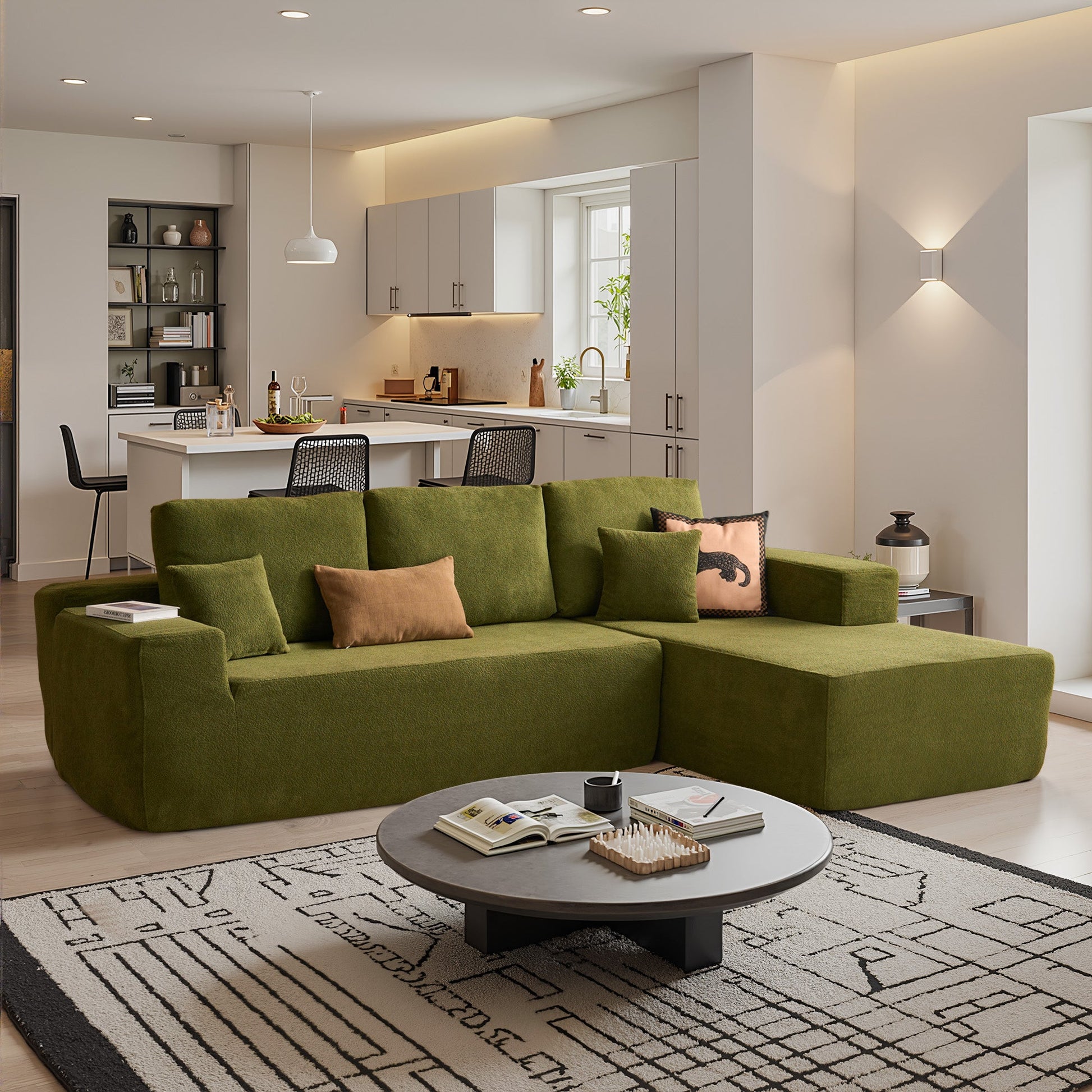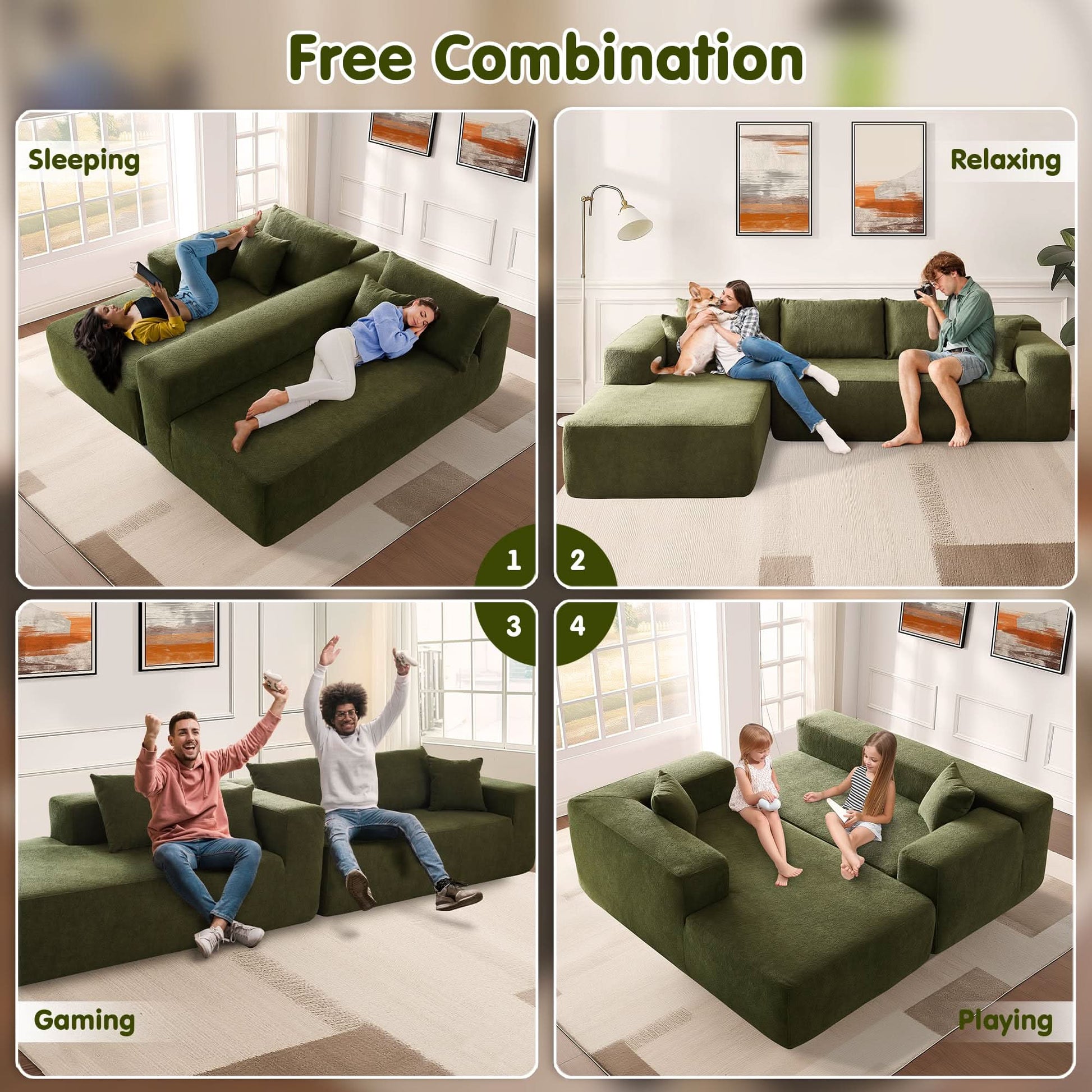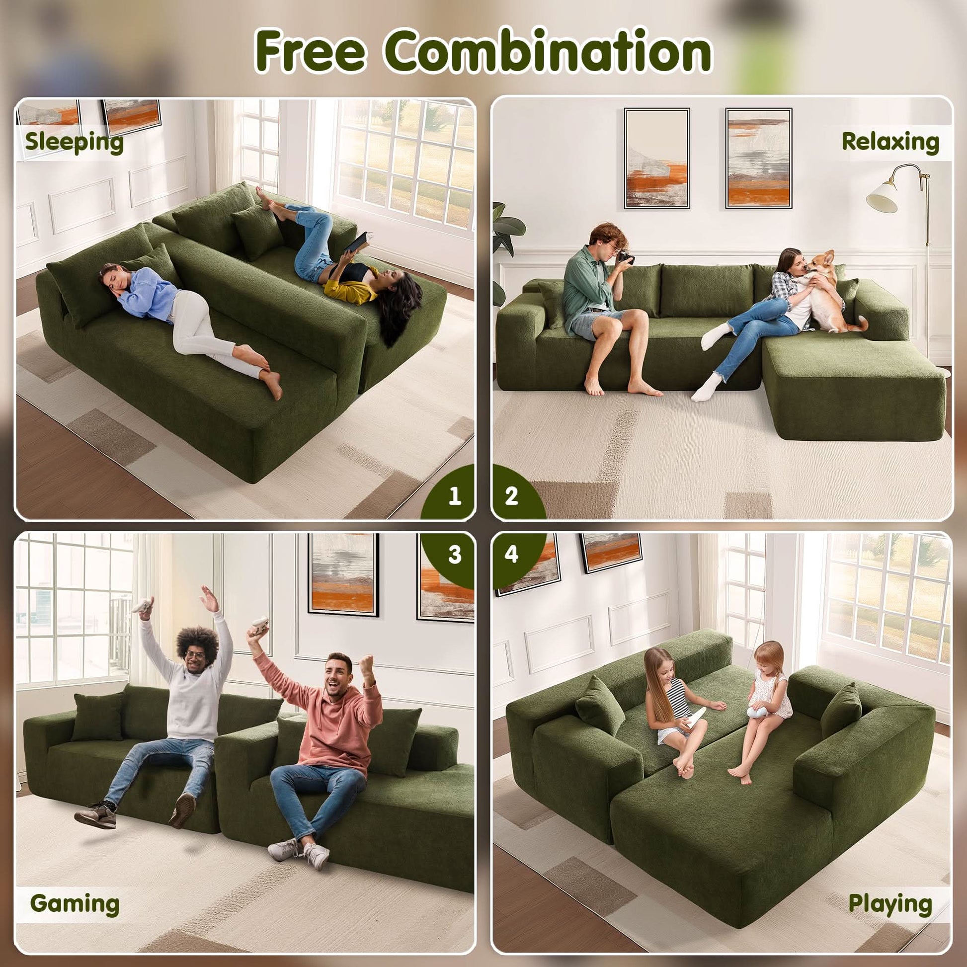 Modular Sectional Sofa:Our modular sectional sofa is built for real-life living.You can configuration to suit your room layout.It offers plenty of flexibility for everyday comfort, whether you're furnishing a cozy apartment or a modern open-plan space.