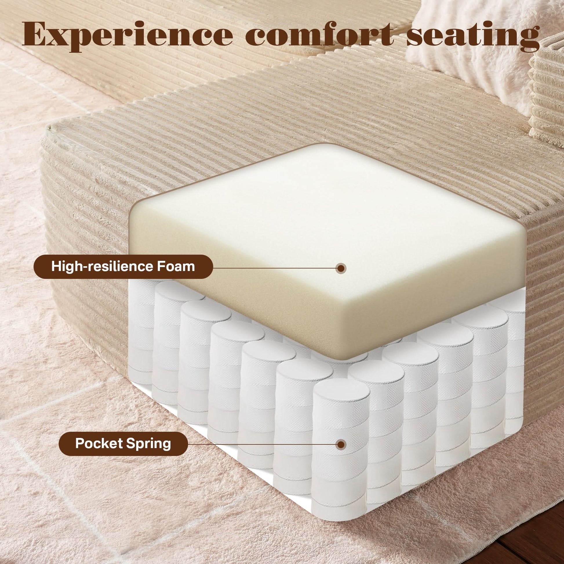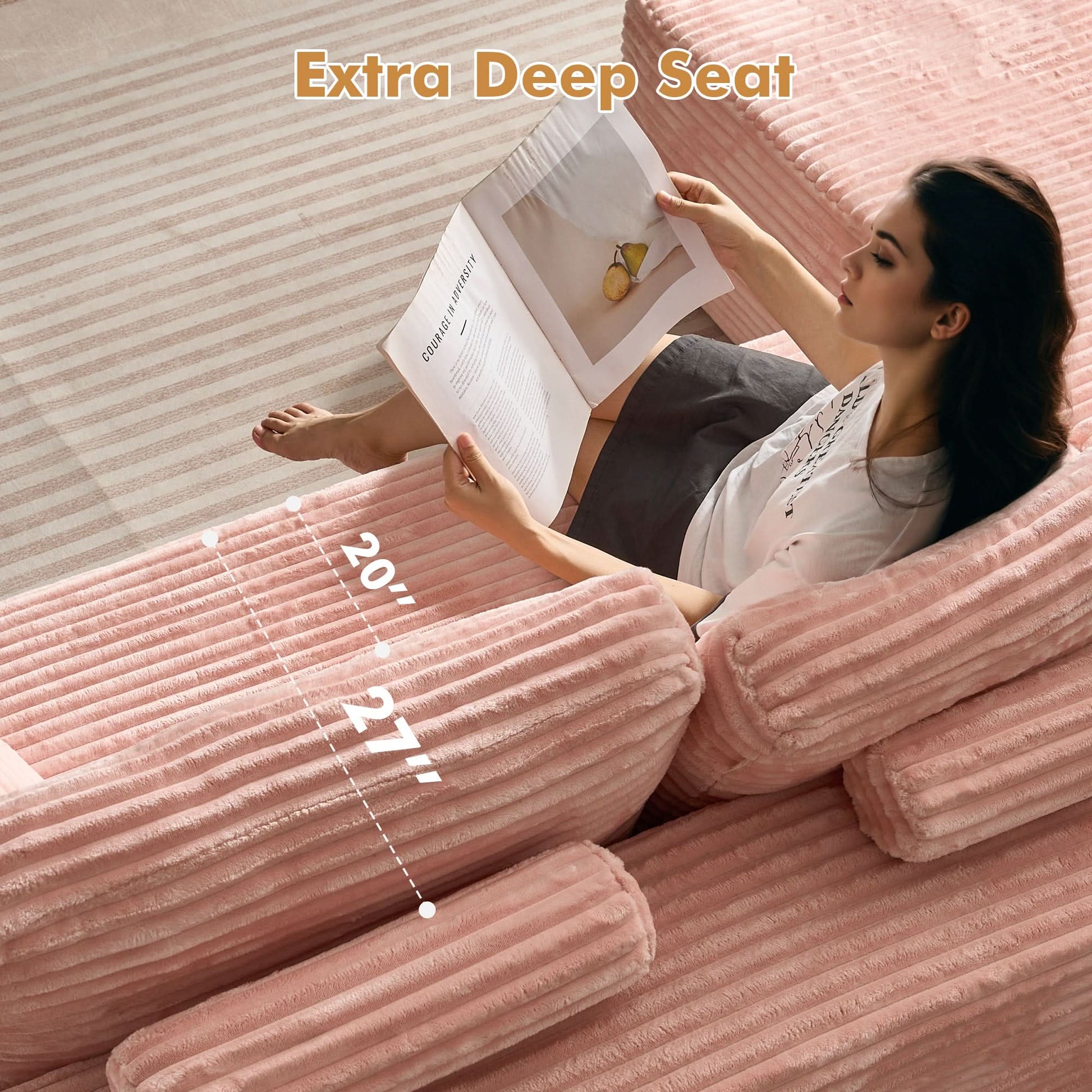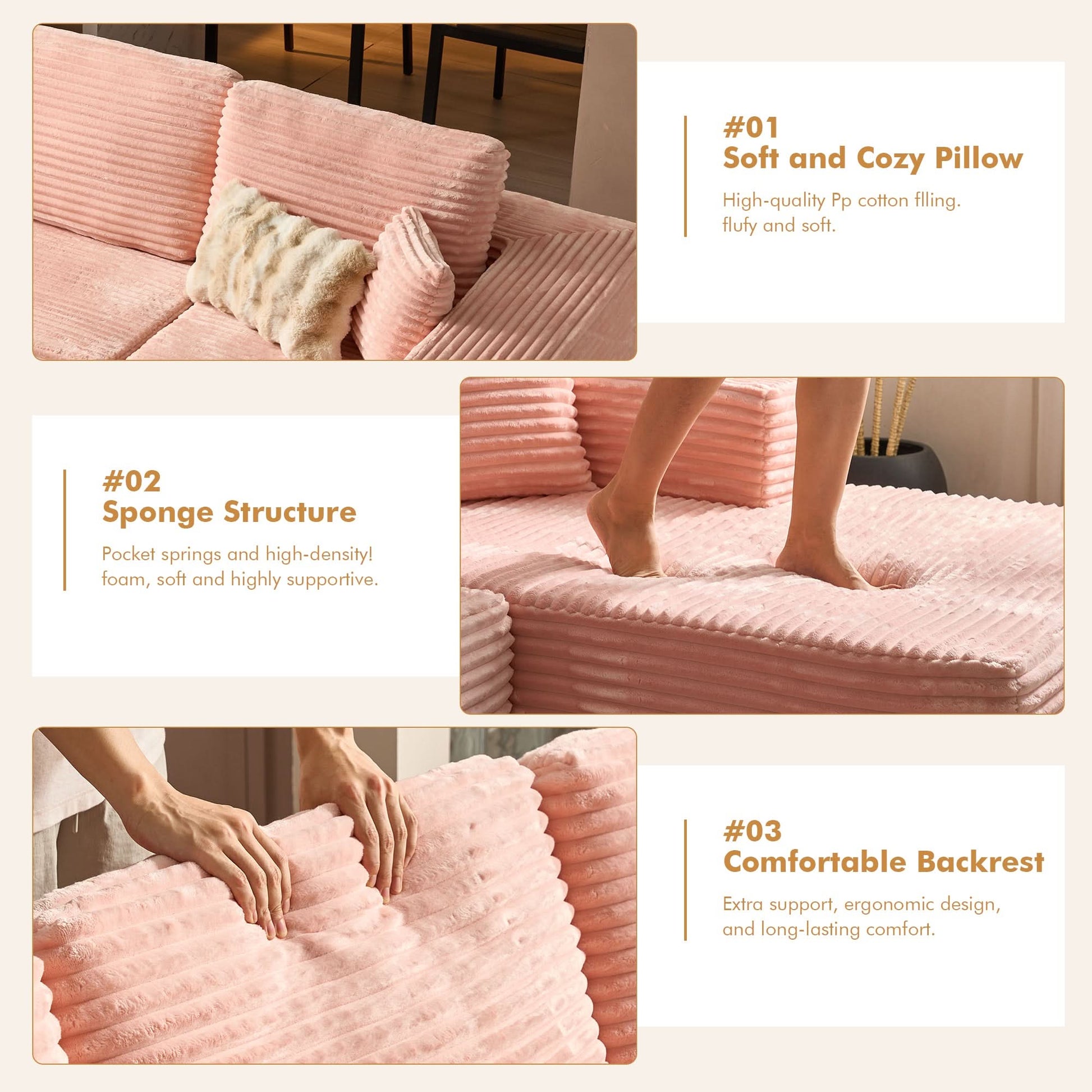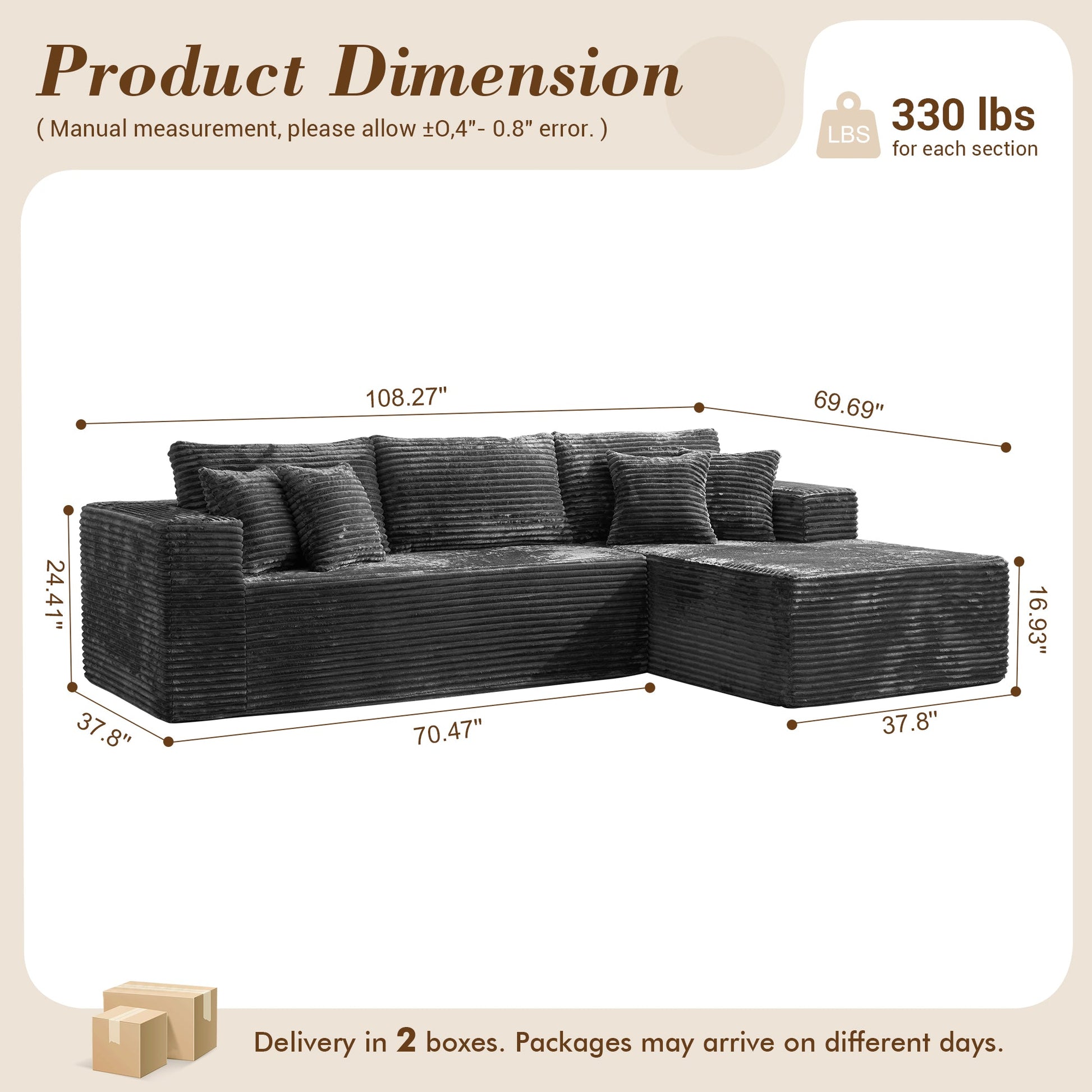 OVIOS 104" L-Shape Modular Couch with Chaise, Plush Corduroy Fabric, No Assembly Required
