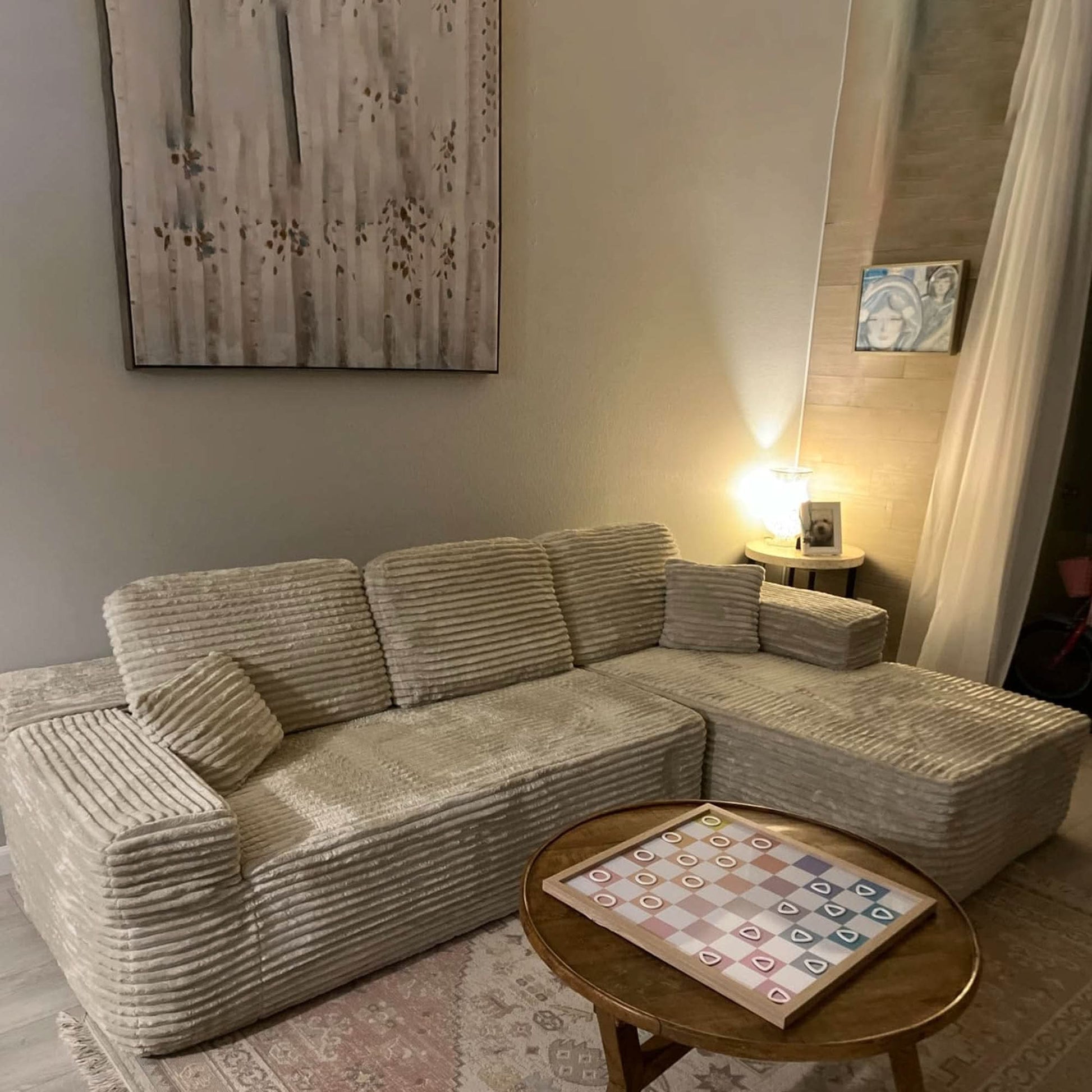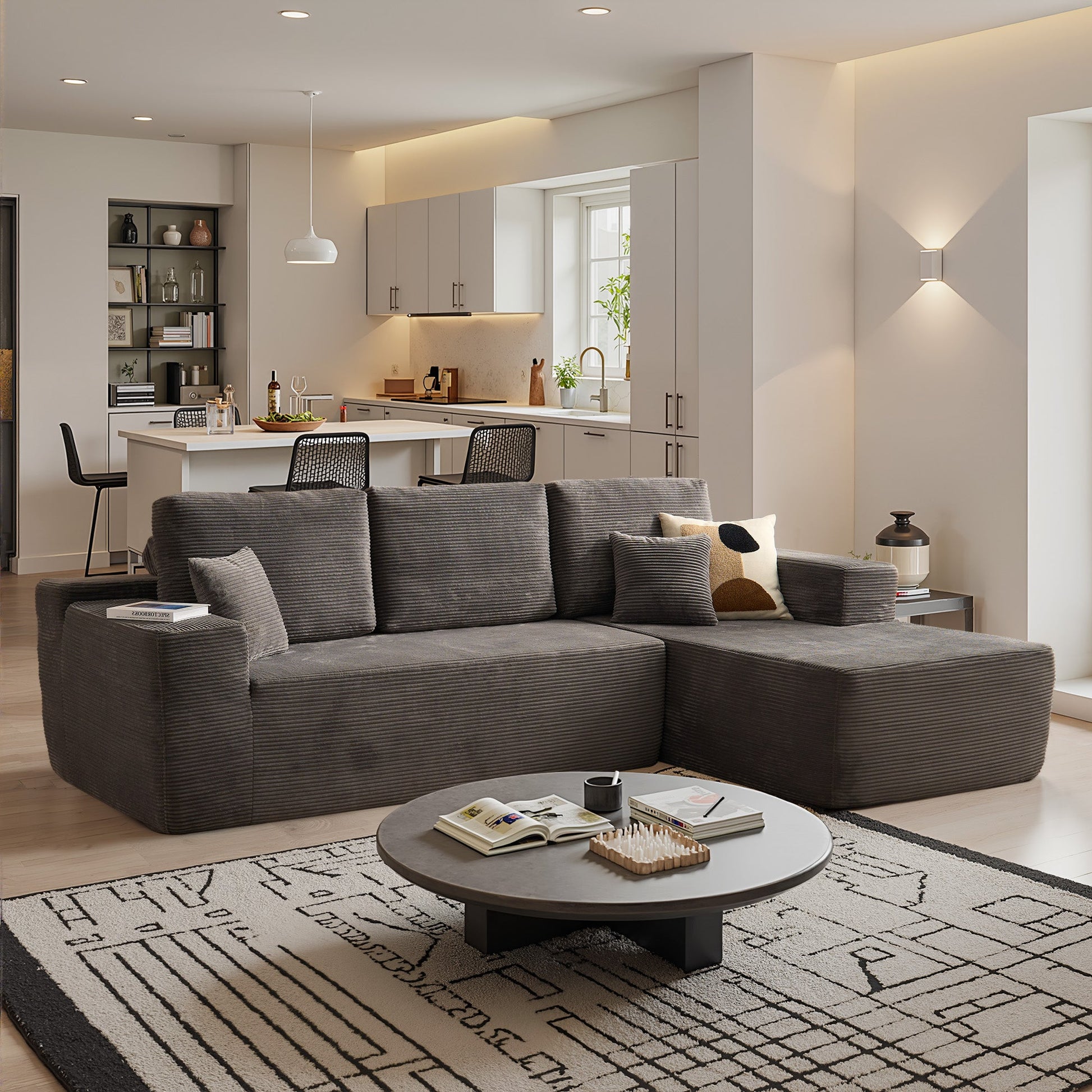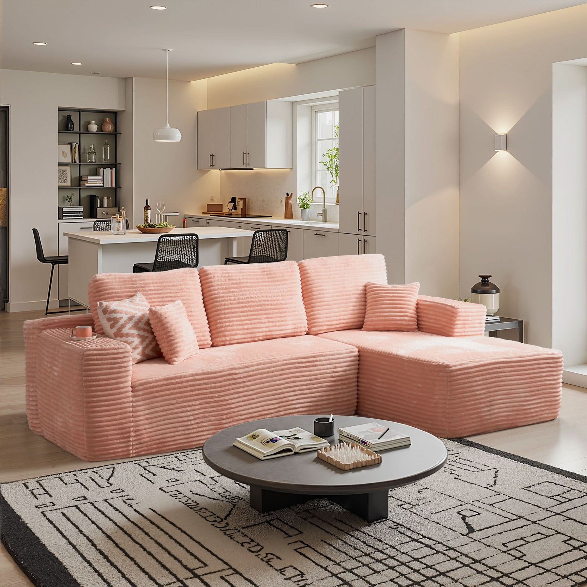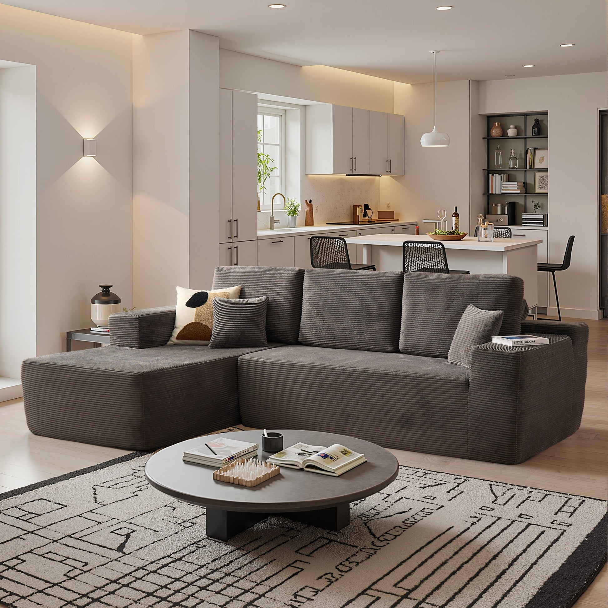 OVIOS 104" L-Shape Modular Couch with Chaise, Plush Corduroy Fabric, No Assembly Required