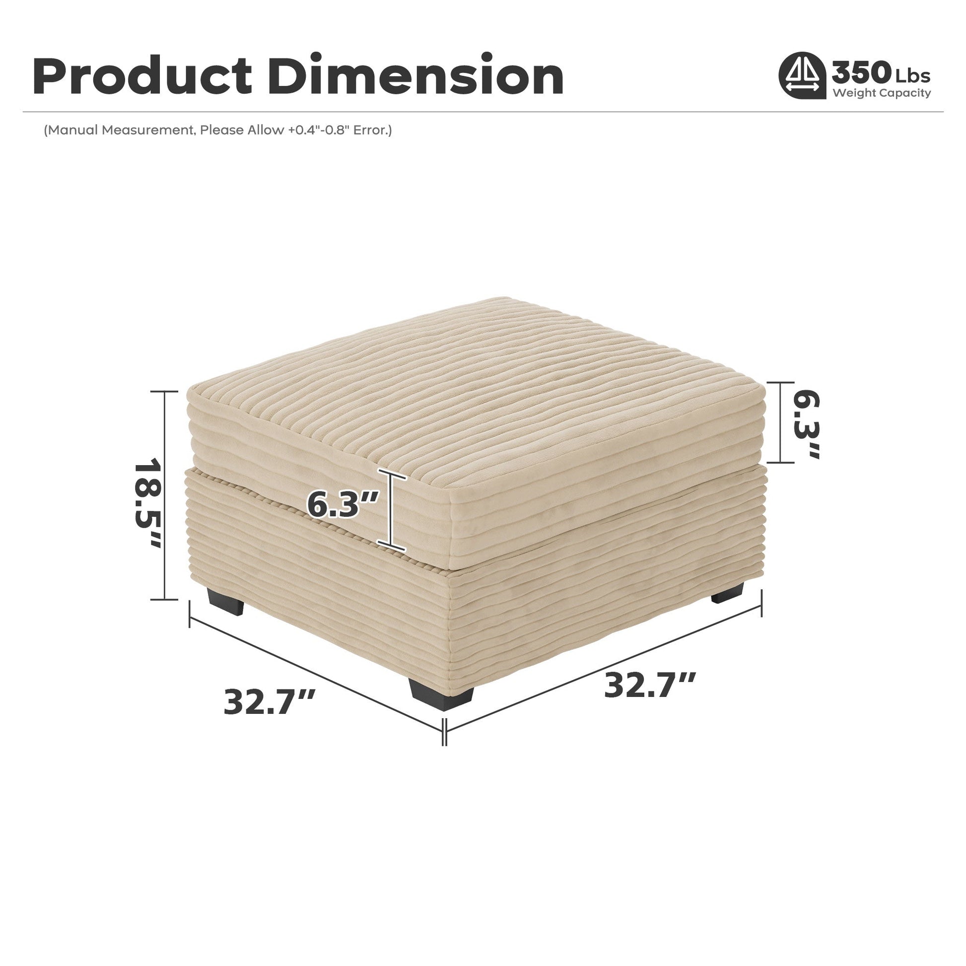 OVIOS Living Room Modular Couch Ottoman, 1 Wale Plush Corduroy Fabric